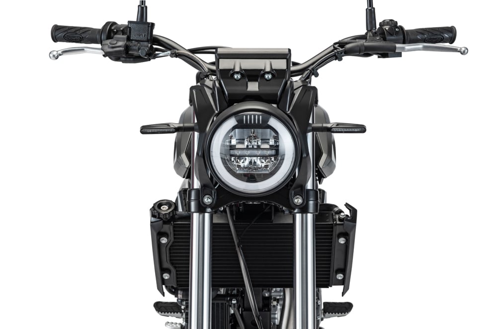 The TFT color dash provides the speed, tachometer, odometer with trip meter, fuel level, range, and gear position.