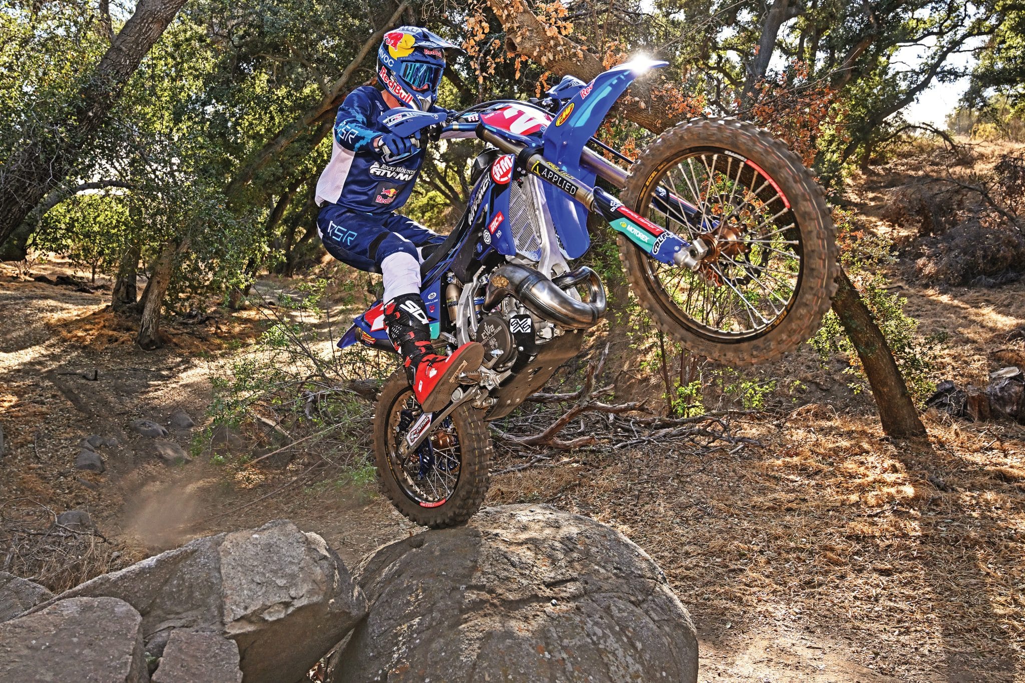 As far as riding, it’s not like any Yamaha two-stroke we’ve ever ridden, but it’s certainly not like a Euro 300, either. Where the stock YZ has a slow ramp-up and a hard hit, Cody’s bike is much more linear. Compared to a 300 KTM or Beta, though, it’s much more playful. There’s just enough of a kick to be fun, even on a motocross track. But, most of the feats that Cody performs are just absurd. We have no appetite for hopping from one gigantic boulder to another or riding straight up vertical hills. Cody makes all that stuff look absurdly easy. For him, it probably is. We will take his word that the bike is amazing in those situations. It certainly looks that way.