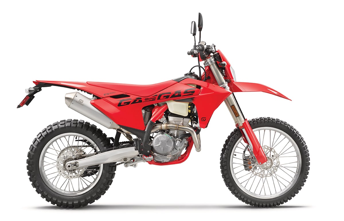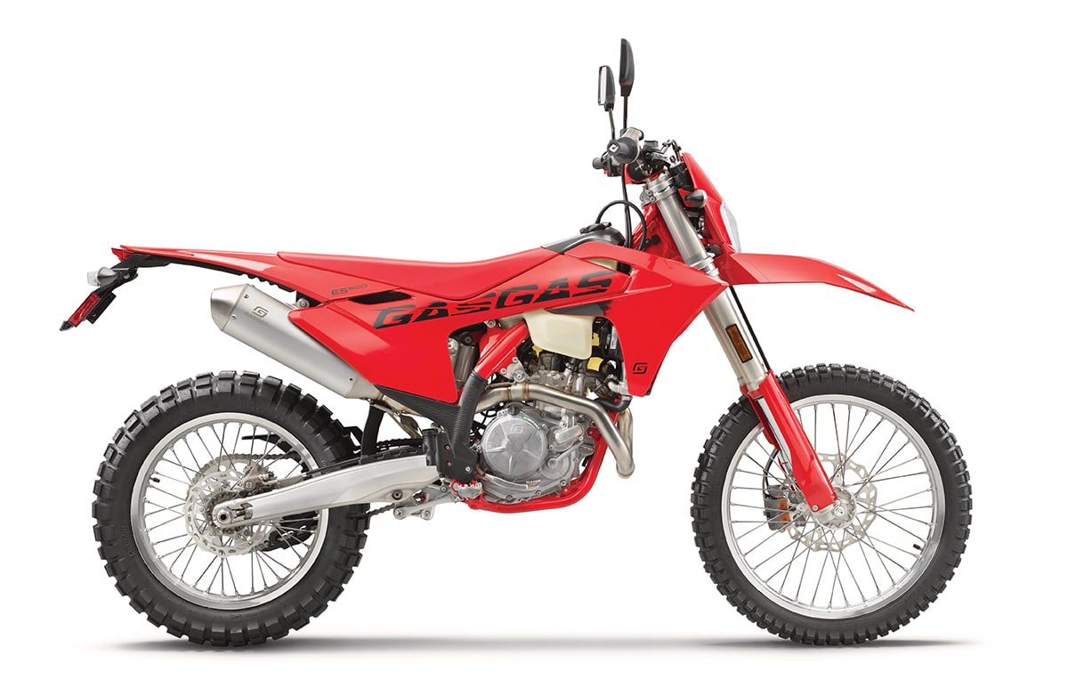 This is the most powerful bike to ever carry the GasGas name. The 692.7cc single-overhead-cam engine is, in fact, one of the most powerful single-cylinder motors ever built. The ES700 has a ride-by-wire EFI system with a six-speed gearbox. A trellis frame is mated to a polyamide airbox. The ES700 shown here is a 2024 model, and an updated version is said to be announced soon. It is unclear if it will be called a 2025 model or a 2026.