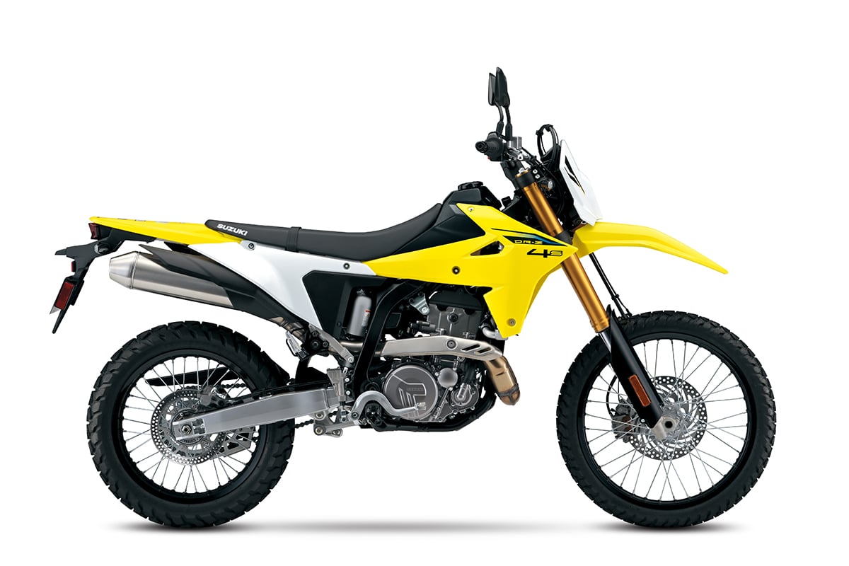 This is the biggest surprise of 2025. Suzuki’s DR-Z-4S replaces the 25-year-old DR-Z400. It is fuel-injected, has four levels of traction control and switchable anti-lock braking. Within the new chassis, you can see hints of the original DR-Z400 motor, but it now has dual spark plugs and a Ride-by-Wire throttle system. The DR-Z4S is said to have gained some weight over the old 400, but has more modern electronics and suspension.