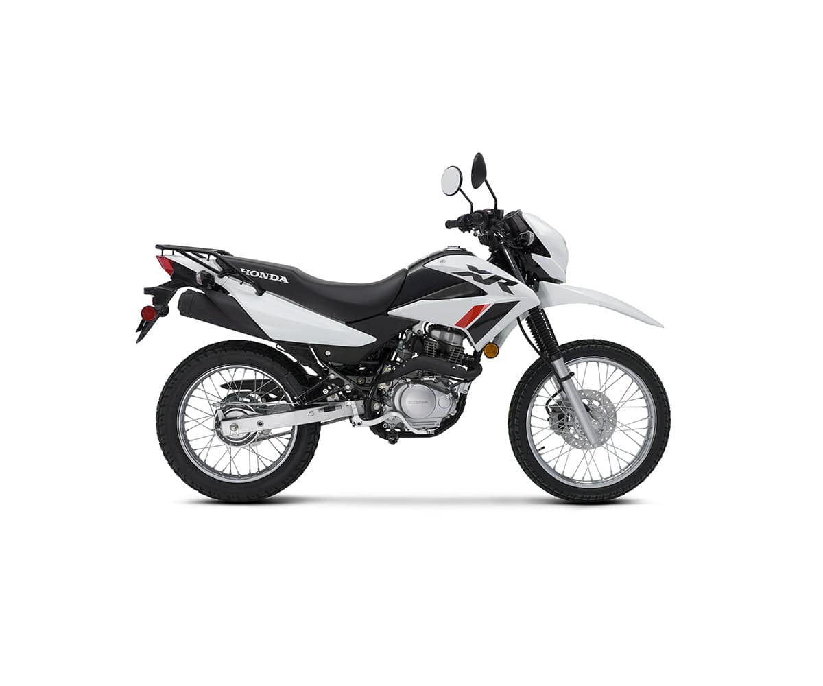 The Honda XR150L is special. It’s a legitimate dual-sport bike that’s approved by every government agency that has a say in the matter, and it sells for one fourth the price of a Husky dual-sport bike. It has an air-cooled, two-valve motor with a real-live carburetor. The rear wheel has a drum brake, and the suspension is non-adjustable. It does have electric start, a six-speed gearbox and a hydraulic front disc brake. o