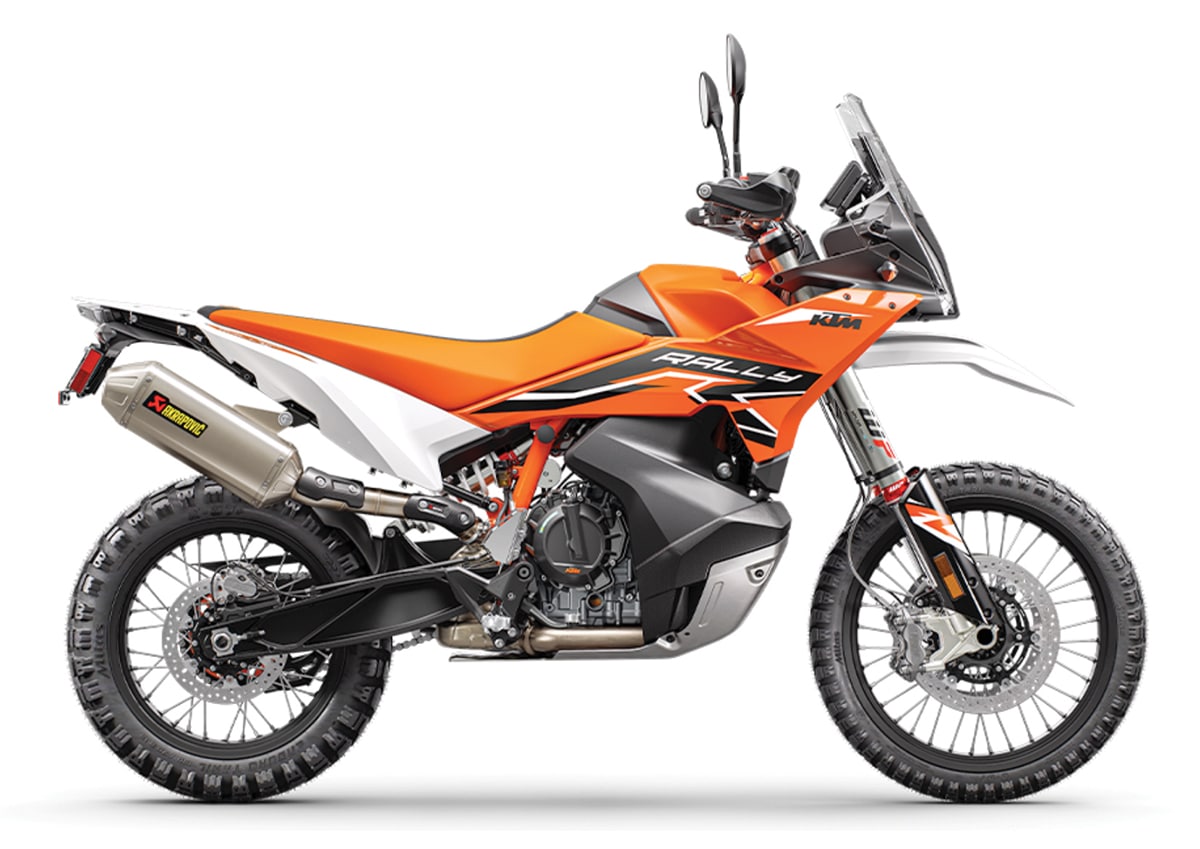 A limited-edition model, the 2024 KTM 890 Adventure R Rally is fit with race-spec WP XPLOR Pro suspension, heavy-duty rims and a lightweight Akrapovic slip-on exhaust. As for electronics, it comes with Tech Pack. Motor Slip Regulation, Cruise, Quickshifter and the latest Rally mode are in the package. This allows adjustable wheel-slip, deactivates anti-wheelie mode and allows for three levers of throttle response. For the off-roader, it has wider pegs, Mitas Enduro Trail rubber and a steering damper.