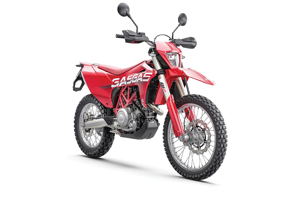 GasGas ADV ES 700 is dirt-oriented (for an Adventure bike) and has the same basic motor and chassis as the KTM 690 Enduro and the Husqvarna 701 Enduro, but has its own bodywork. It features Ride-by-Wire and electronic systems with three modes—Off-Road, Street and Motorcycle Traction Control (MTC)—while the ABS system offers an optional Off-Road mode. A trellis frame is fit with machined triple clamps and WP XPLOR suspension. It has a 13.4-liter gas tank located under the rear subframe.