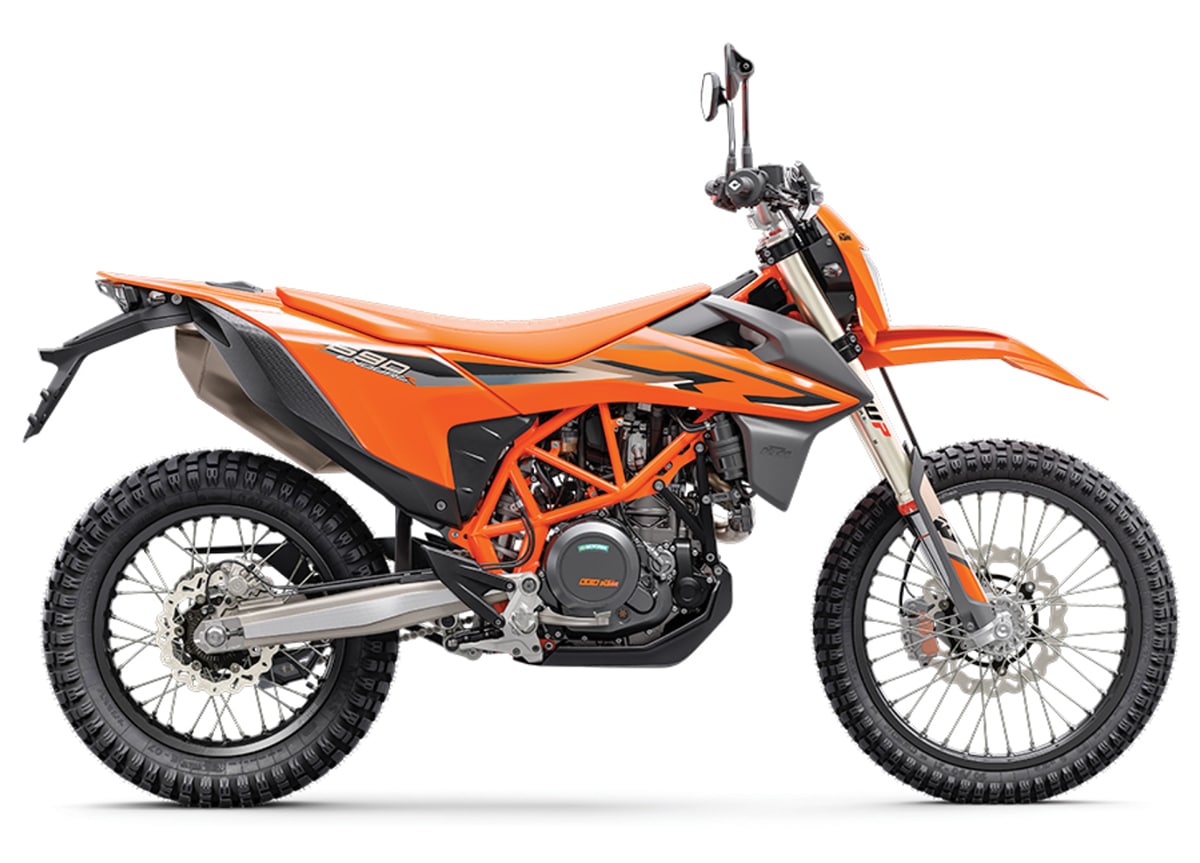 This 373cc, single-cylinder travel adventure machine has a 3.8-gallon fuel tank, a sturdy windshield and ergonomics that allow for easy stand-up riding. An LED light, TFT display, ABS and MTC traction control allow the rider to adjust the performance to the terrain. It’s fit with a slipper clutch and Ride-by-Wire on a dual-overhead cam engine with a 6-speed gearbox. A trellis frame, reworked WP Apex suspension, cast wheels and ABS highlight the 390.
