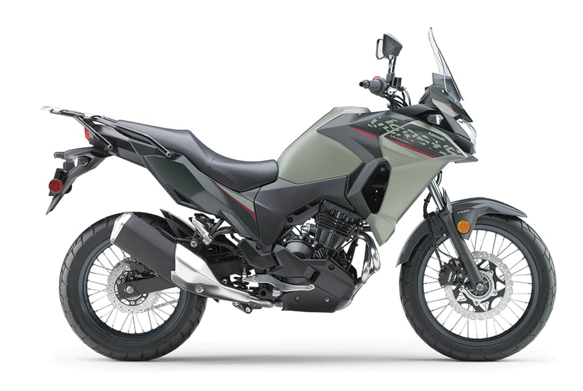 The Versys-X is Kawasaki’s most economical entry-level machine designed for adventure touring. Power flows through a 296cc parallel twin, which gets fuel via a digital fuel-injection system. The Versys engine is fit with a slipper clutch, and the disc brakes have ABS. It comes equipped with a telescopic fork with 5.1 inches of travel, a 19-inch front wheel, 17-inch rear wheel, front cowling, a tall windshield, and a 4.5-gallon fuel tank that is good for a long exploration ride.