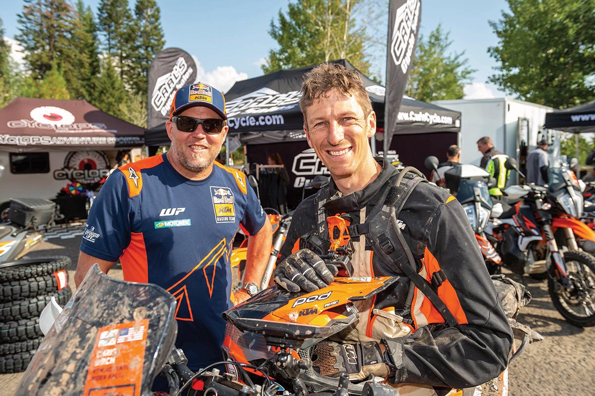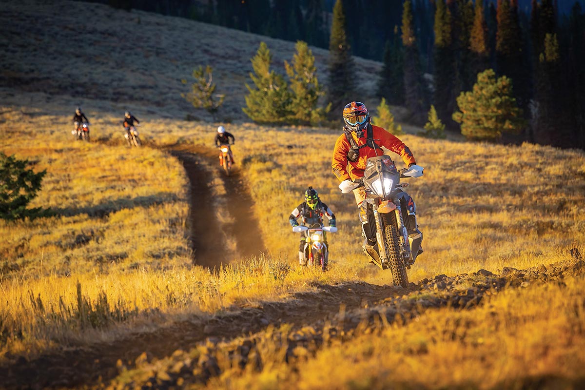 That’s the KTM Adventure Rally in a nutshell. There can’t be many other organized events that would place three such different riders on such different bikes in the same place at the same time. This is an annual gathering of adventure bikes, dual-sport bikes and even some preposterously unsuited street bikes. It is promoted by KTM and open to anyone on anything, taking place over three days in different locations each fall. I had been to one in Steamboat Springs, Colorado many years earlier. This one was in Idaho, based out of the Tamarack Ski Resort. The real key to the success of the rally is that it can be custom tailored to virtually anyone. The organizers have figured out that the participants span a wildly diverse spectrum. On one end, you have the retired CEO with a Multistrada who has very little off-road experience. On the other, there might be a double-A enduro rider on a barely legal dual-sport bike. Some riders want to be pampered; others want to be challenged. The riding is correspondingly diverse, and so are the accommodations. You can book a suite or bring a tent. At its most bare-bones level, the organizers provide a GPS route, food and a certain degree of safety via chase vehicles and provisions for medical emergencies. Riders are encouraged to ride in groups, but it’s not a follow-the-leader procession.