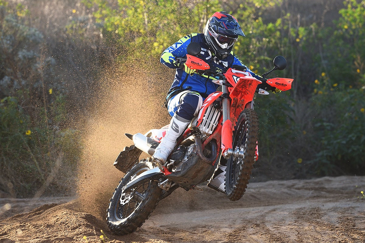 We’ve been doing our best. The Beta is an impressive bike. It’s the least bottled up of the fully certified 500cc dual-sports—even the KTM and Husky 500s are more detuned. Two years ago Tom Webb loved the Beta 500 so much that he purchased one for himself, and he still prefers riding it over the many test bikes he has available.