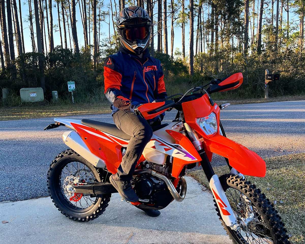 I just recently purchased a 2023 KTM 500EXC-F Dual Sport from Ride Now in Jacksonville, Florida. It is no surprise or mystery that in stock trim that all dual sports are a bit corked up and lethargic. This can bum you out if you ride on the more aggressive side of the spectrum. Here are a few things that I did to upgrade the bike for damage control, power, style, and comfort. I am 5’8”. 165 lbs, 35 years old and intermediate level rider with motocross background primarily.