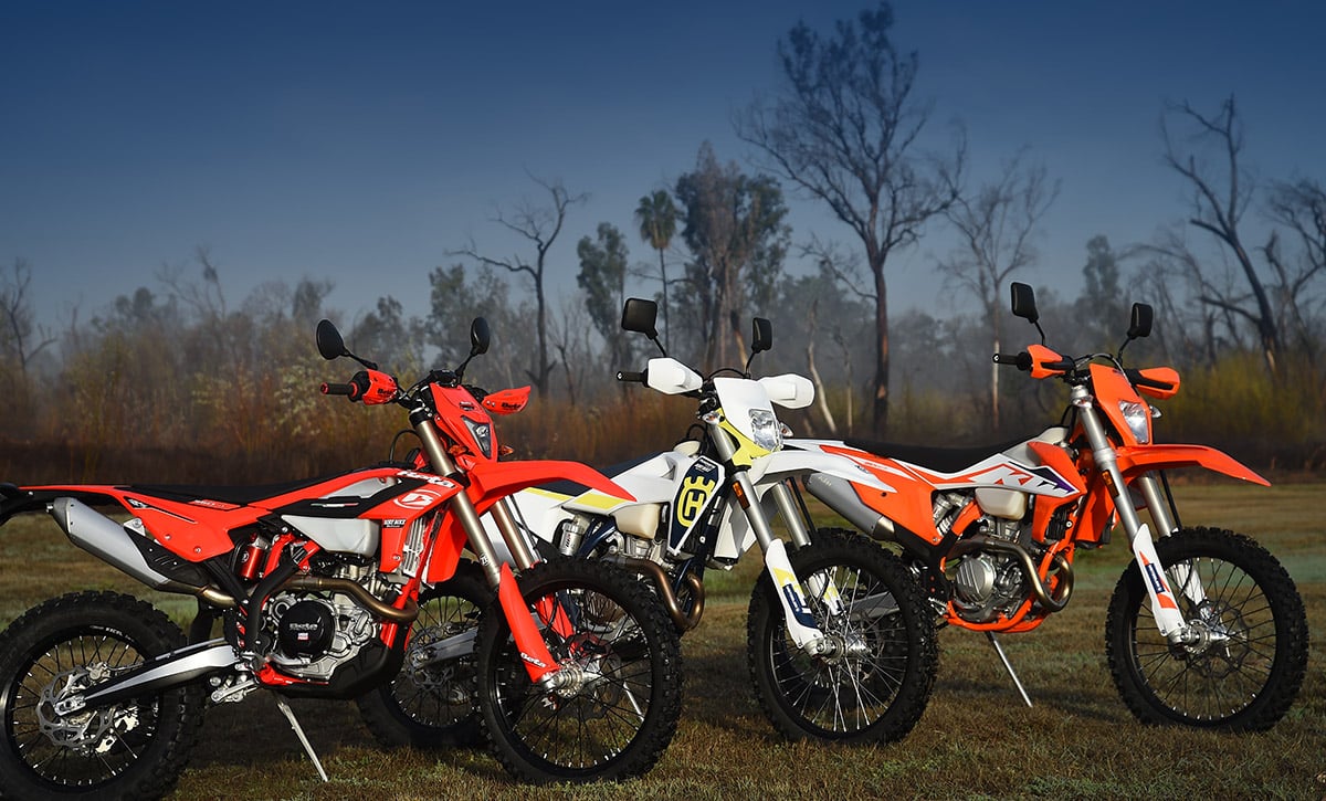 Likewise, they aren’t quite right for long stints on the highway. They vibrate, and, if the wheels aren’t balanced, they bounce. The KTM and Husky are more comfortable than the Beta, which has a hard seat and a wide tank.