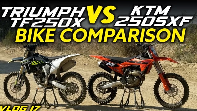 The staff at Dirt Bike Magazine spends the day comparing the all new KTM 250SXF to the new Triumph TF250X at Glen Helen Raceway. We bring out a few test riders and gather their feedback to give a raw comparison on these two motorcycles. The KTM and Triumph both have good qualities to them. Which one is better? Well that’s up to you but we hope in this video you are able to gather enough information and make a choice. THIS IS A VLOG! Come have some laughs with us at the track and enjoy this completely behind the scenes day of testing with the crew. Thanks for hanging with us!