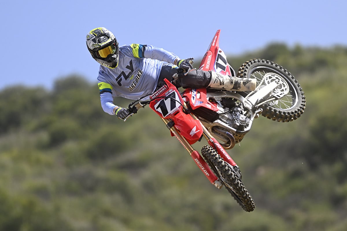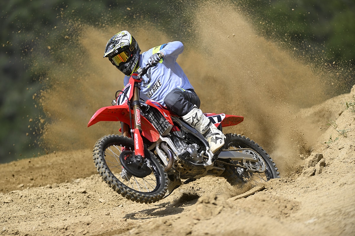 The one area where the Honda draws controversy is overall handling. It’s very Supercross-oriented, which means quick, responsive and agile. Most test riders get off the WE and marvel at how light it is. In truth, it’s right in the middle of the pack, weight-wise. At 233 pounds without fuel, it’s slightly heavier than the Yamaha, KTM, Husky and GasGas, but lighter than the others. You would swear it’s 20 pounds lighter than any of them. The flip side is a little nervousness. It’s not scary, but if you let your guard down, it can grab your attention suddenly and violently. You can calm the Honda down with a little suspension work, but it seems to need different measures for different riders. The WE has stiffer valving than the standard model, but it almost works out the same because the titanium-nitride coatings are so much more slippery. Riders often find that a little more preload in the rear makes the rear suspension work better. You would think that would make the steering even quicker, but that’s not always the case. Jared Hicks, Justin Jones and his dad, Gary Jones, have all arrived at very different setups, but all feel they have found the magic cure by going a little stiffer in the rear. The bottom line is that you have to do what feels right for you.
