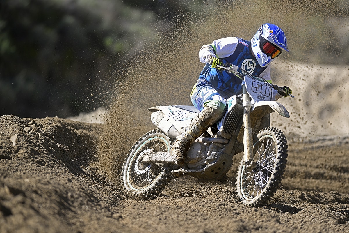 Still, with a first-year bike from a new manufacturer, you would expect major flaws to expose themselves quickly. There’s simply nothing that objectionable. We did have to spend some time figuring out the suspension settings. Our test bike was a display model taken straight from the floor of the AIM show in Vegas. It had no setup and no break-in. After putting some initial time on it, the suspension still felt slow and over-damped in every direction. We didn’t know where the clickers were supposed to be, so we turned to our settings for the Honda CRF250R. It turned out that it was still over-damped, so we kept going until we were 15 clicks out for both compression and rebound in front, 12 for low-speed compression in the rear, 10 for rebound, and two turns out for high speed. There’s no question that the bike is stiffer than the average 250 motocross bike, but that suits us and our oversized test riders well. The real takeaway here is that the suspension is surprisingly normal and mainstream.