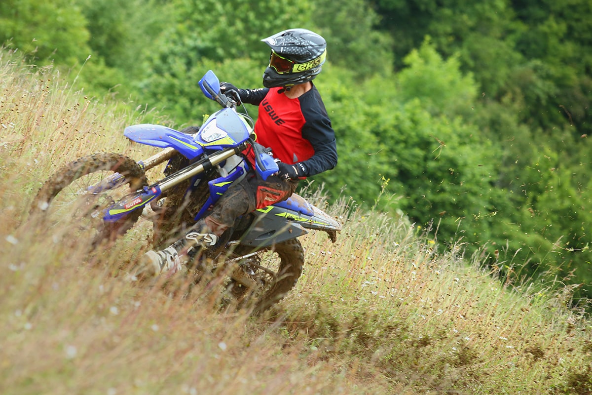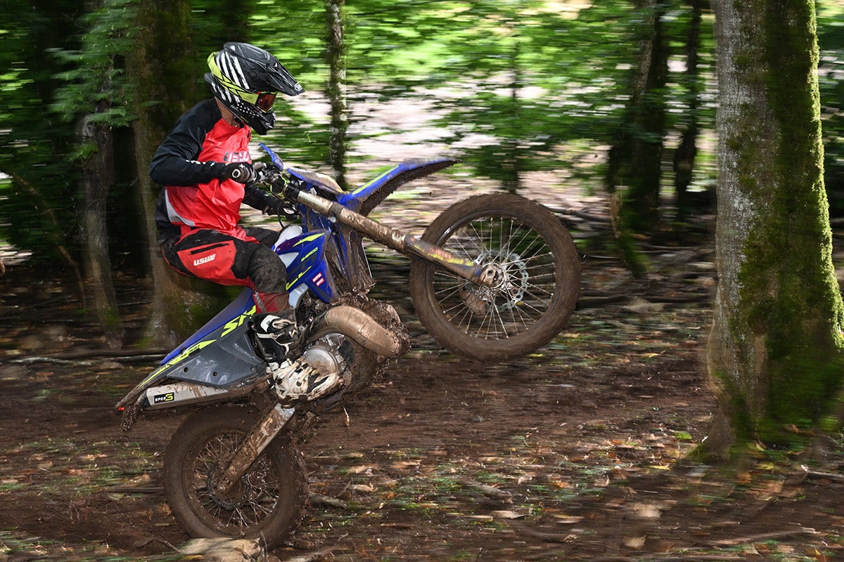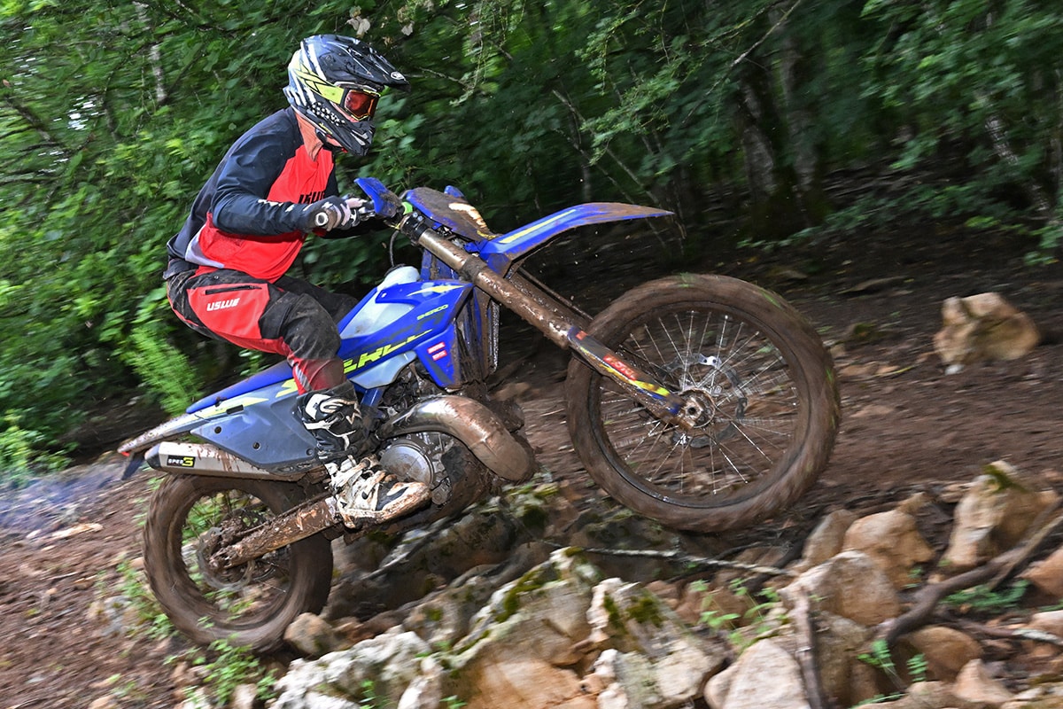 The result is a distinct overall improvement across the board. The 250SEF motor gained just enough on top to make a noticeable difference. It’s still not going to out-drag a KTM or a Kawasaki 250 four-stroke in a straight line, but we get the feeling that Sherco’s priorities lie elsewhere. In muddy, awful terrain, the bike runs flawlessly without missing a beat. The clutch has an easy pull and deals with all the abuse you throw at it.