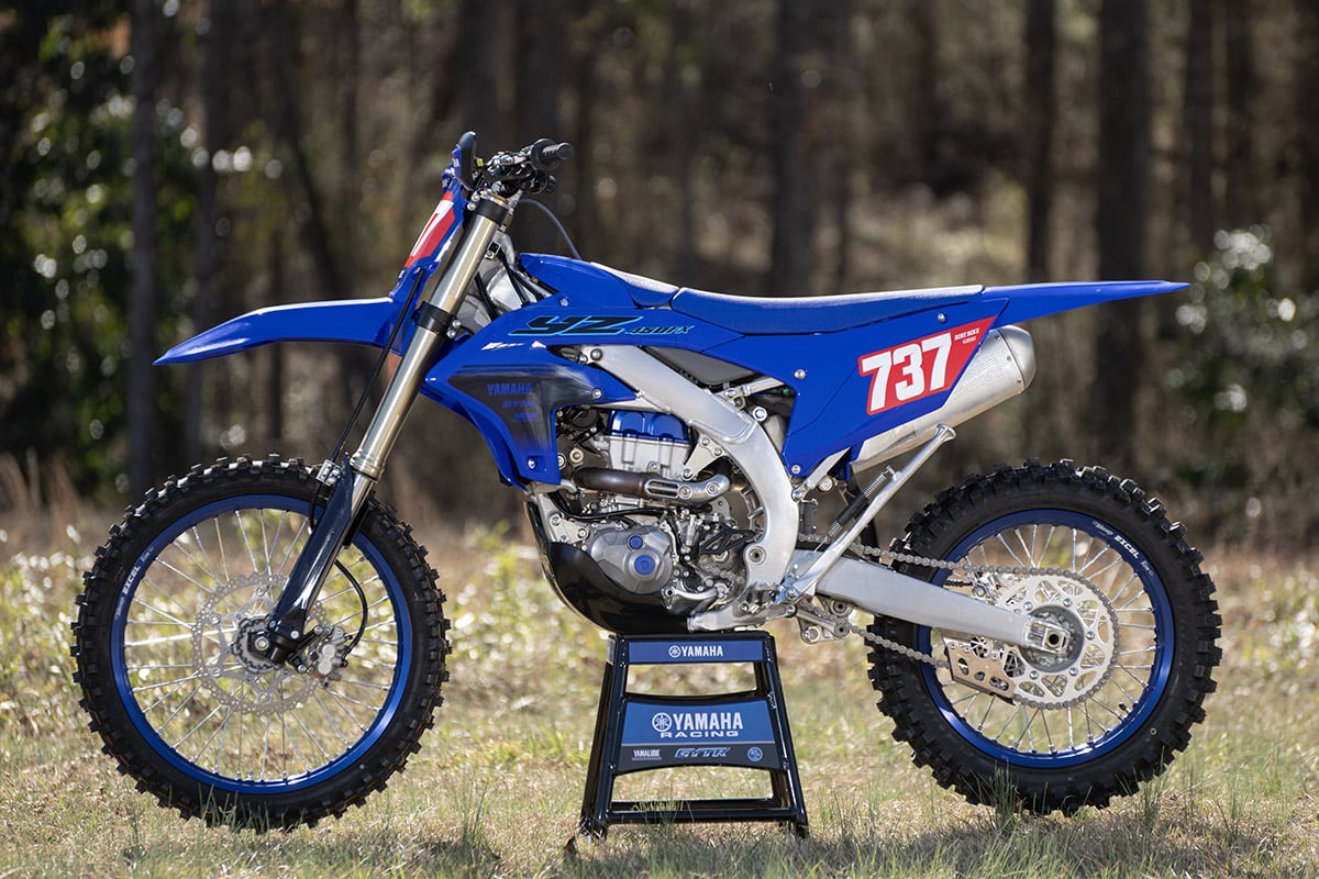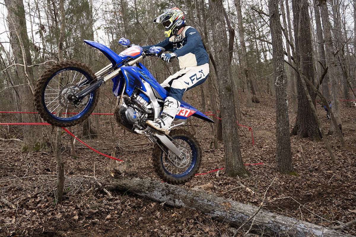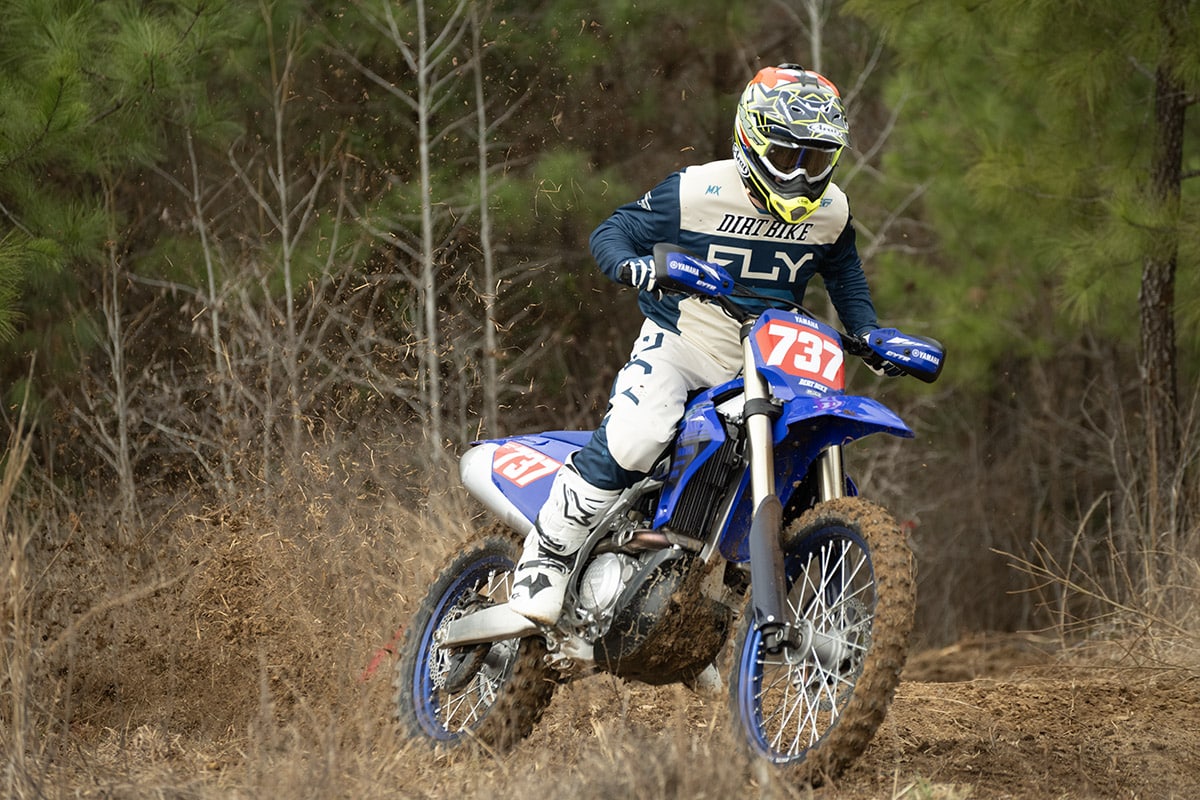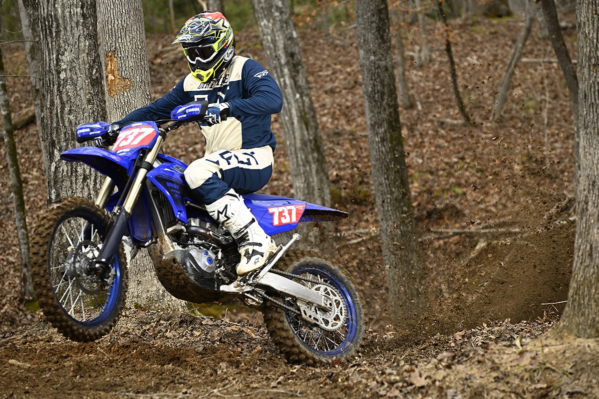 Randy Hawkins runs the AmPro Yamaha GNCC race team out of Travelers Rest, South Carolina. His team training facility is in nearby Union, adjacent to the site of the Big Buck GNCC. We got to ride the 2024 YZ450FX at both locations. The AmPro property has miles of singletrack, whoops and tight trails for Ricky Russell, Liam Draper, and the race team to train, drill and ride for fun. Between that facility and the Big Buck itself, we had the perfect means to better understand the FX and its intended purpose.