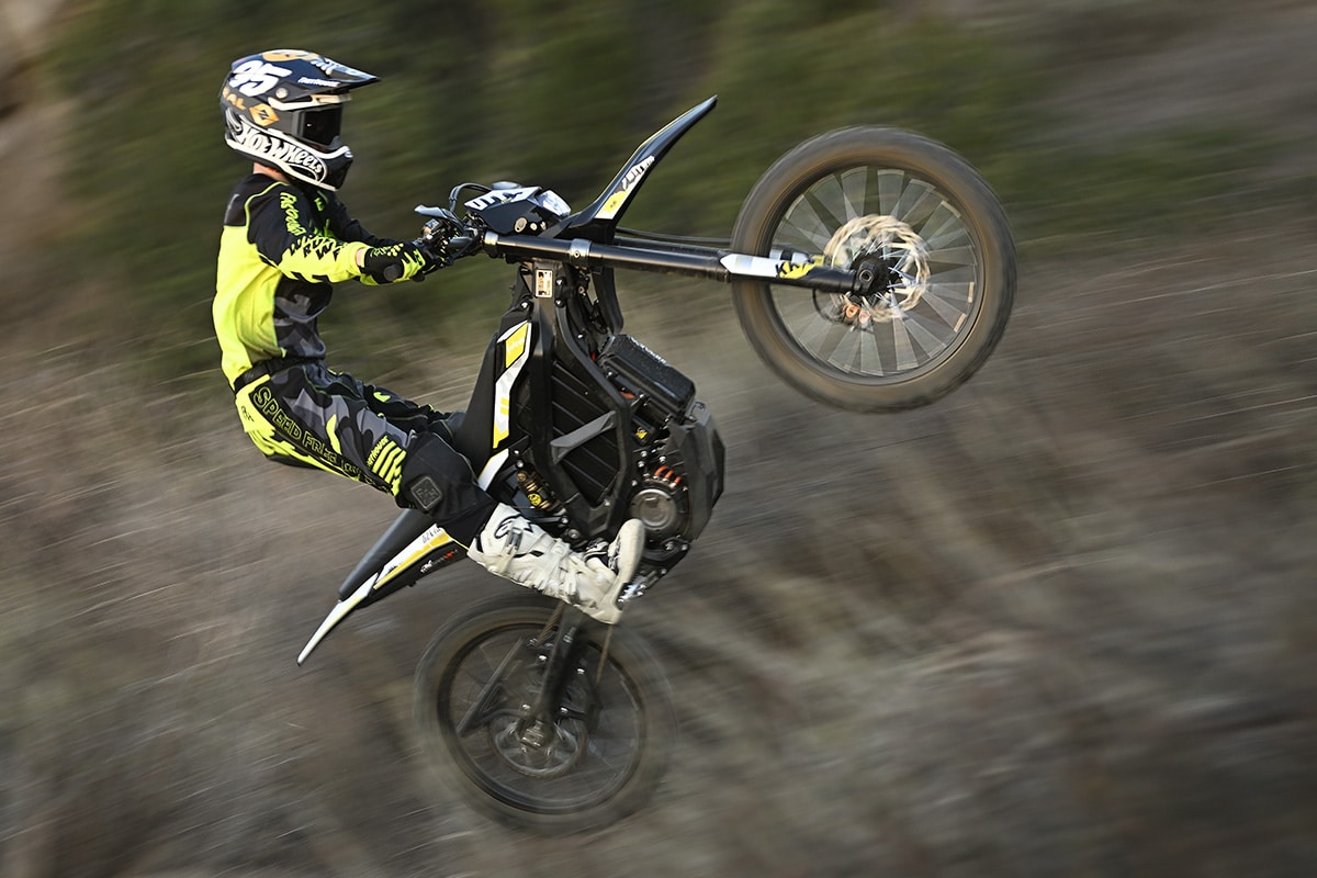Electric bikes aren’t just something in the distant future anymore. They’re here now, and we’ve been having a lot of fun testing them. We are done apologizing to the angry, over-my-dead-body crowd. Get over it, because you might actually come to enjoy them. The guys at KC Powersports in San Juan Capistrano loaned us a Surron Ultra Bee, and as of right now, we are shocked with the overall package.
