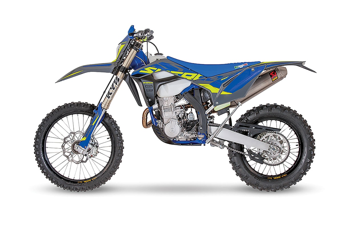 Most people in the U.S. have a notion that Sherco makes trials bikes and two-strokes, but are still not familiar with the French company’s total offerings. Grant Baylor won the 2020 AMA National Enduro Championship on a Sherco 450SEF four-stroke. That bike is also the basis for Sherco’s Dakar effort. The 450 and 500 use different variations of a fuel-injected, double-overhead-cam motor with a hydraulic clutch. The brakes are by Nissin and the suspension is KYB.
