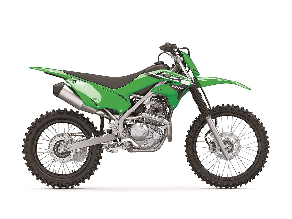 Kawasaki knows that new riders come in all sizes. The KLX230R is an entry-level bike for full-sized adults, as well as teenagers. It has big wheels, a manual clutch and a 6-speed gearbox. The motor is an air-cooled two-valver with fuel injection and electric start. Both wheels have hydraulic disc brakes. Kawasaki also offers a dual-sport version of the same basic package for $4999.