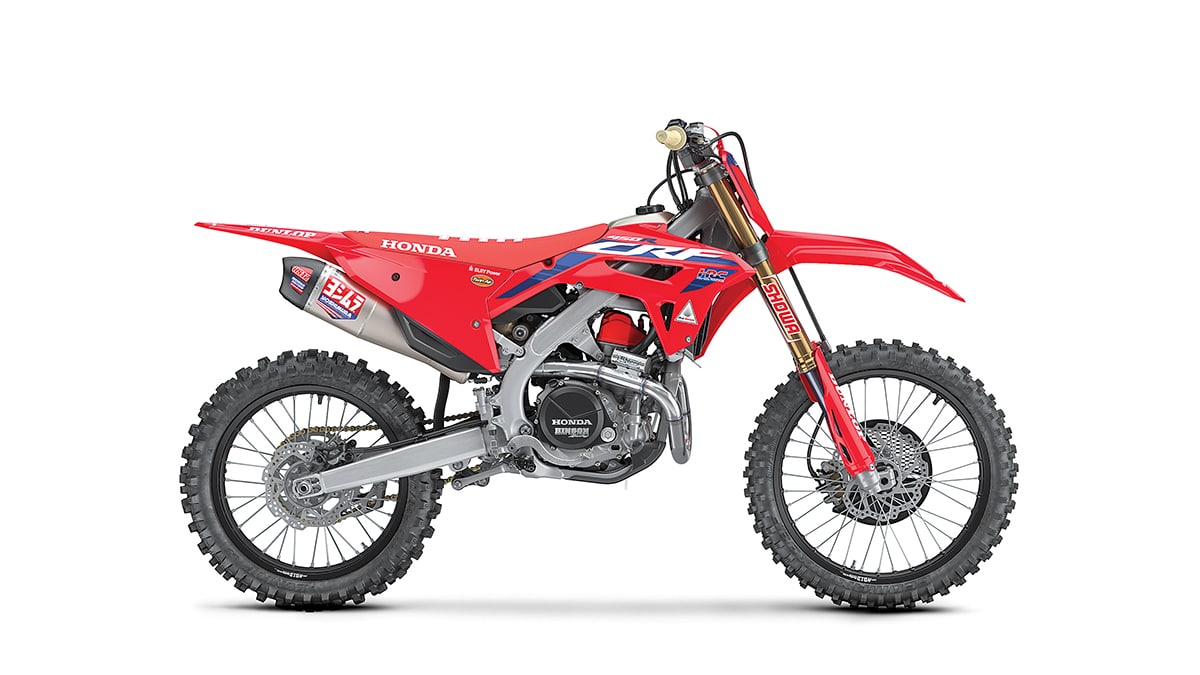Honda has a Works Edition for those who want a bike that’s one step closer to what Jett Lawrence rides. It comes stock with a hand-ported head, a Yoshimura RS12 exhaust system, special coatings for the Showa suspension com-ponents, a Hinson clutch basket, a Throttle Jockey seat cover and more goodies. The ECU settings and suspension valving are also exclusive to the RWE.
