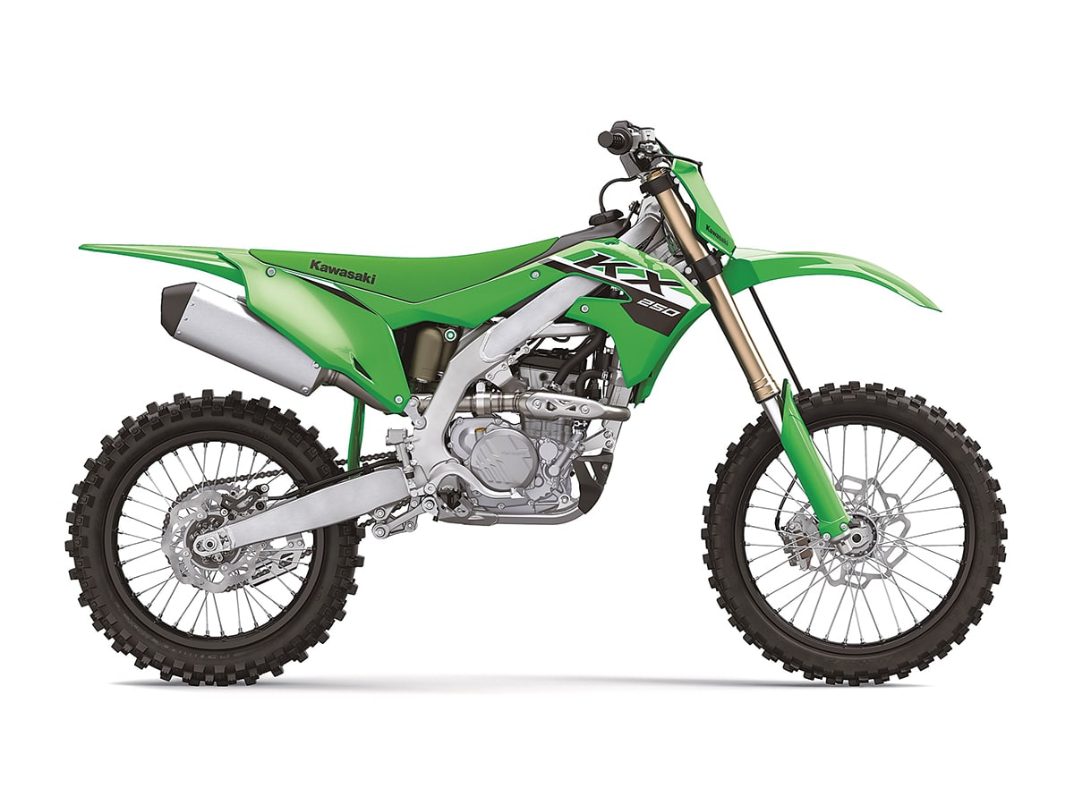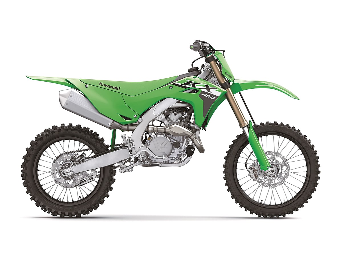 Kawasaki went a little wild for 2024. The KX450 has dramatic changes across the board. The frame and motor are new, and the head now has a center exhaust port. The coupler-based mapping system is gone, replaced with a han-dlebar-mounted map switch and smartphone connectivity. The KX450F also has traction control and a Brembo front brake for 2024. There’s no word yet on if and when a KX450SR special racer will be offered.