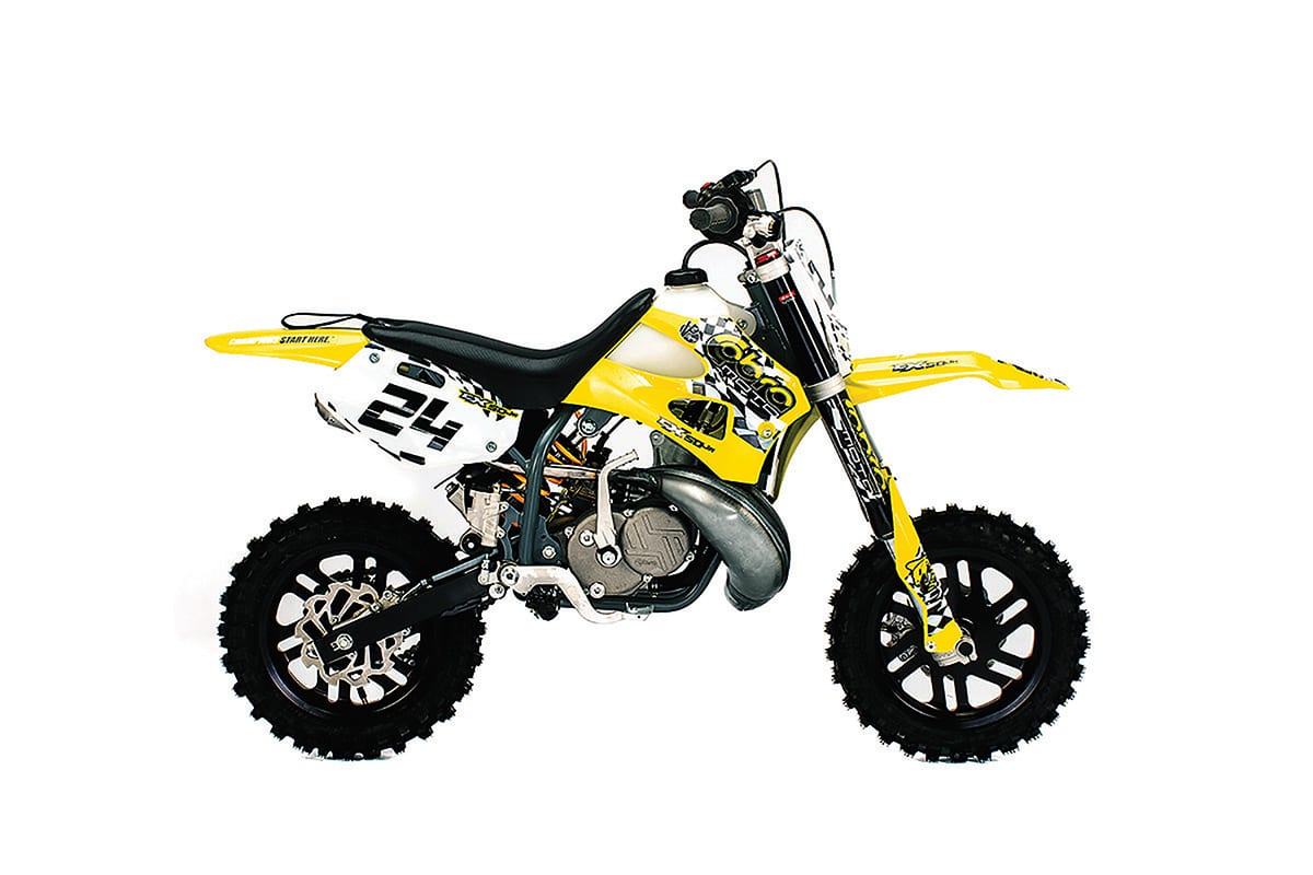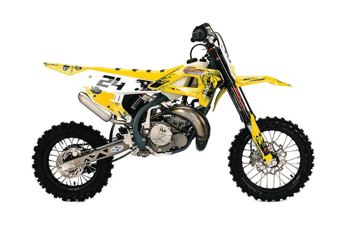 KTM Finally gave the 65SX some updates, and that includes a new look. More and more young riders are growing up orange because of KTM’s long-term investment in the mini ranks. The KTM 65SX dominates the 65 class in amateur racing across the country. It has a manual hydraulic clutch, a 6-speed gearbox and hydraulic disc brakes. The front suspension is a WP Xact air fork, and the rear is a WP PDS shock.