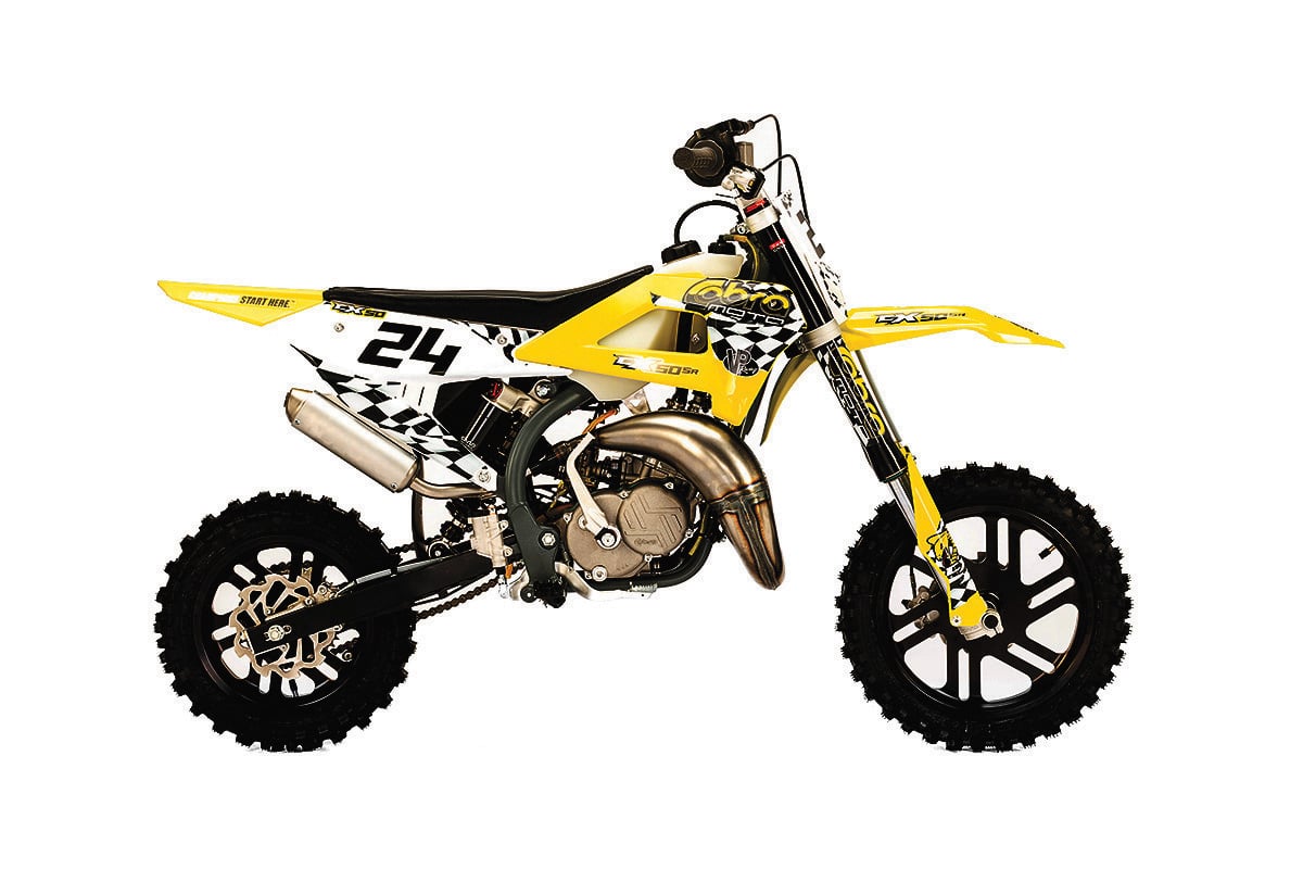 The Cobra CX50 has earned over 300 championships in its 30-year history, and this summer at the Loretta Lynn Amateur Nationals the company earned a few more. The CX50 is built like a scaled-down factory motocross bike. It has twin radiators, forged triple clamps and hydraulic disc brakes. The standard CX50 already has a long list of high-end parts, but there’s also an upscale Factory Works Edition for top-ranked young riders. It sells for $5848. To commemorate the company’s 30th year, there’s also an Anniversary Edition for $6048.