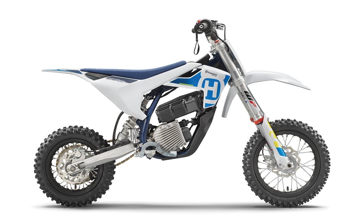 The KTM Junior Supercross program has now gone silent with the SX-E 5. This is the same program that started over 20 years ago with the gasoline-powered KTM 50SX, and the transition to electric-powered bikes has been seam-less. The SX-E 5 has six ride modes, 907 Wh of battery power and a seat height of 665mm. The fork travel is 205mm, and the PDS shock provides 185mm of travel. The SX-E 3 has 648Wh of juice and an adjustable seat height of 555 to 600mm.