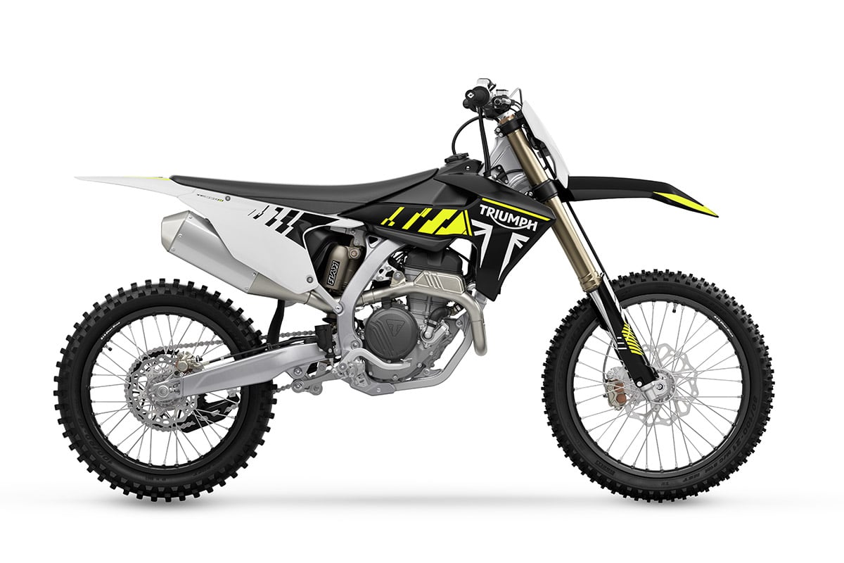 The Triumph TF250X has finally been revealed. The motor is a double-overhead cam, electric-start four-stroke with Del Orto fuel injection. It features traction control, Quickshift and multiple maps. The frame is aluminum and uses a central backbone rather than twin spars. Suspension is KYB and brakes are Brembo.
