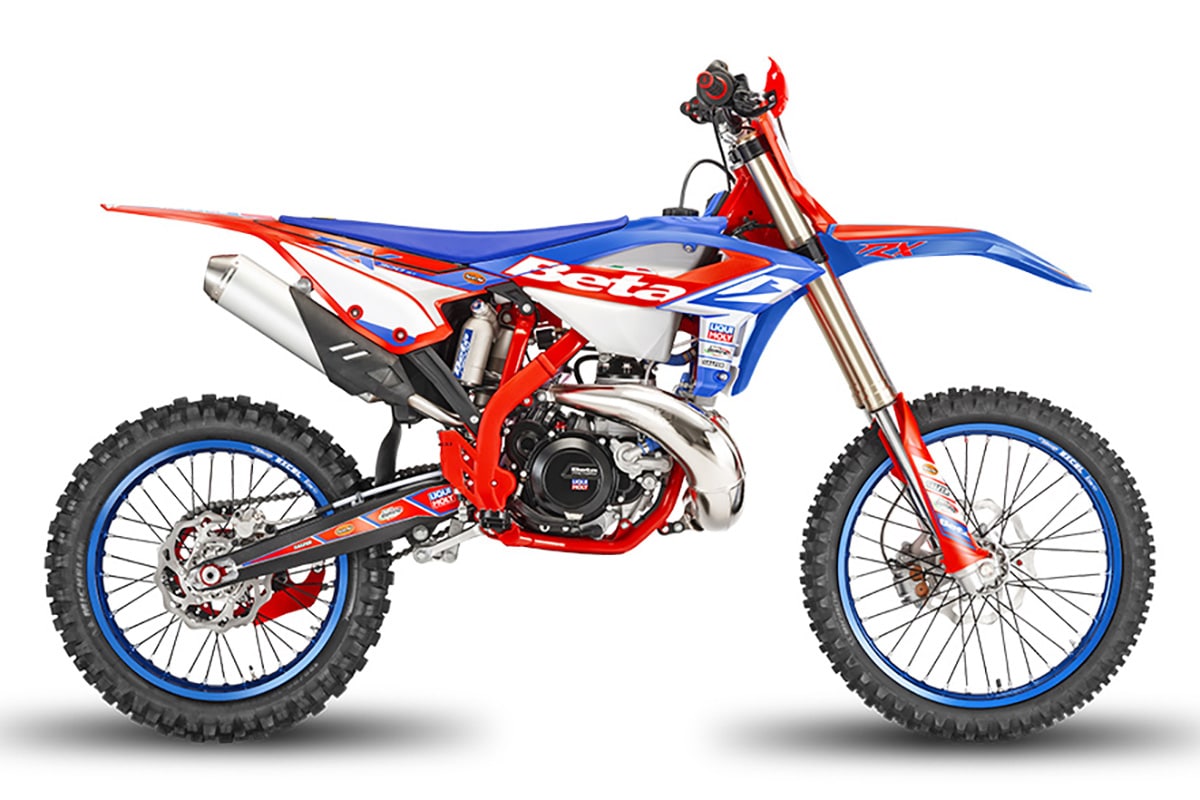 Beta’s place in the two-stroke world has grown from a tiny cult of outliers to a mainstream stronghold. They still feature mechanical power valves and Keihin carburetors, but they have cutting-edge performance. The RR models are considered their standard editions. They have oil injection, hydraulic clutches, Nissin brakes and a map switch with two settings. Both got a diaphragm-spring clutch and hydraulic actuation last year. A Race Edition with upgraded suspension will be announced later in the year.