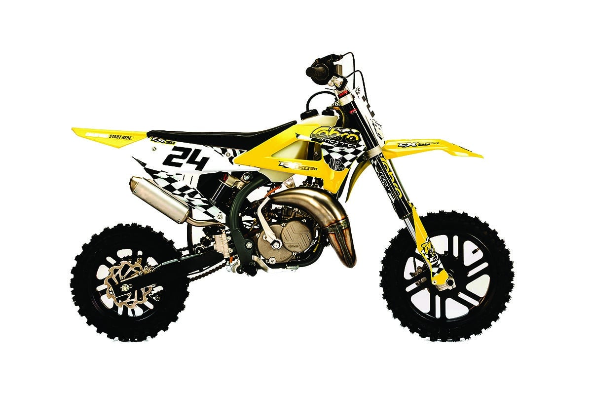 Cobra is a truly American brand that manufactures its bikes almost entirely in Michigan. The CX65 is the top of the line and is the only bike in the mini kingdom that has continuously evolved since its introduction. For 2024 it has a new frame. This follows major motor upgrades the year before. The CX65 has an electronic power valve that is more sophisticated than anything in the mini world. It still has a manual clutch and 6-speed gearbox powered by a case-reed motor with a Mikuni carburetor.