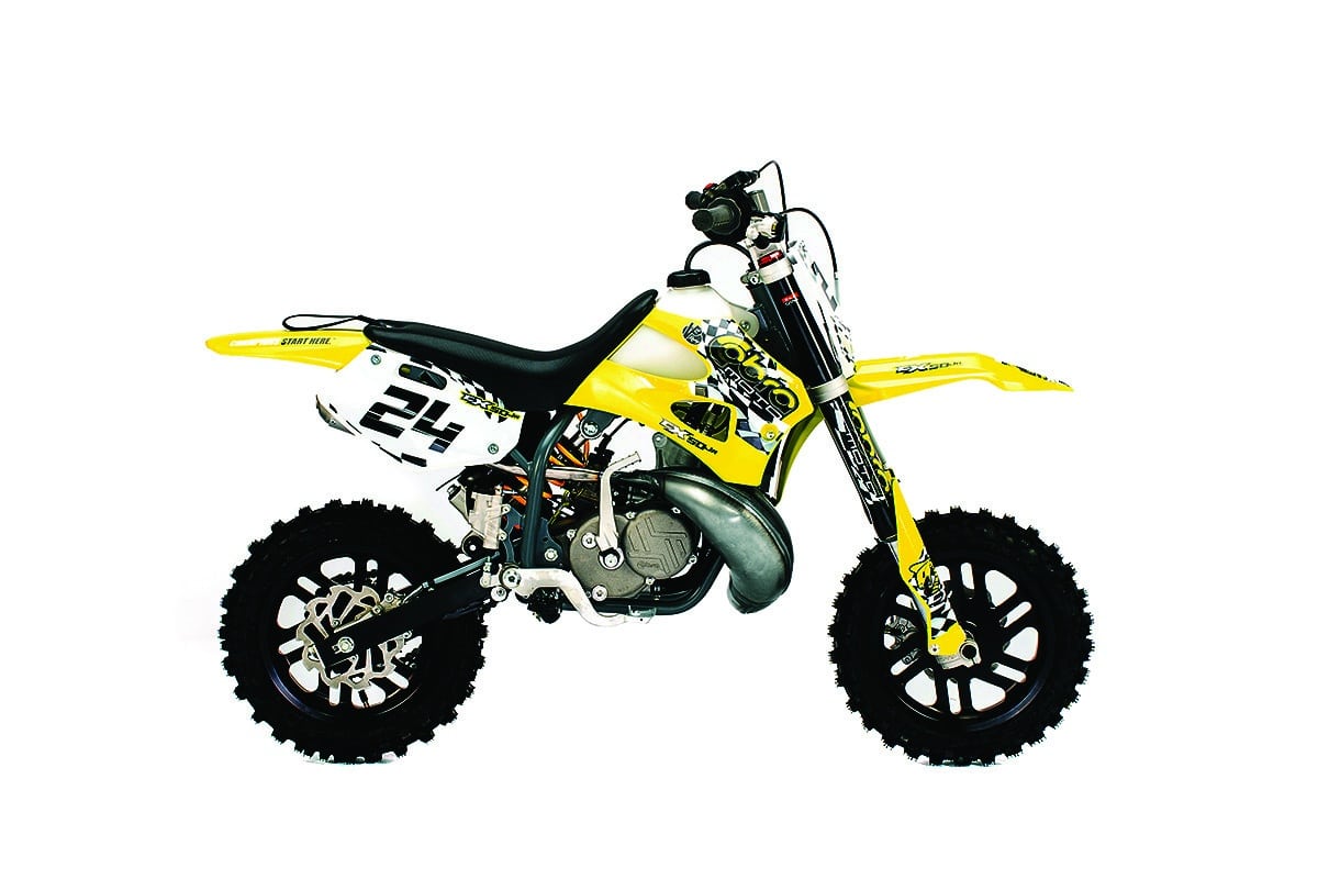 Kawasaki almost single-handedly kept the 65cc class afloat for over 40 years, with continuous production all the way back to the days when it was the KX60. Today’s KX65 is less about racing and more about offering an affordable stepping stone into the world of manual clutches and gearboxes. The littlest KX is still fairly potent and has hydraulic disc brakes. The price is more than $1000 less than any other 65 and even less than most 50s.