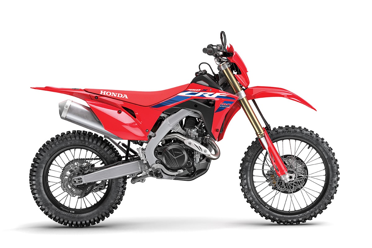 Last year the CRF250RX received extensive updates, so it now returns for 2023 unchanged. It’s similar to the CRF250R motocross bike, meaning it has a 5-speed DOHC motor with finger-followers between the cams and valves. For off-road cred, it comes with softer suspension and a smoother power delivery. It also has Dunlop tires, handguards, 2.2 gallons of fuel capacity, a kickstand and an 18-inch rear wheel.