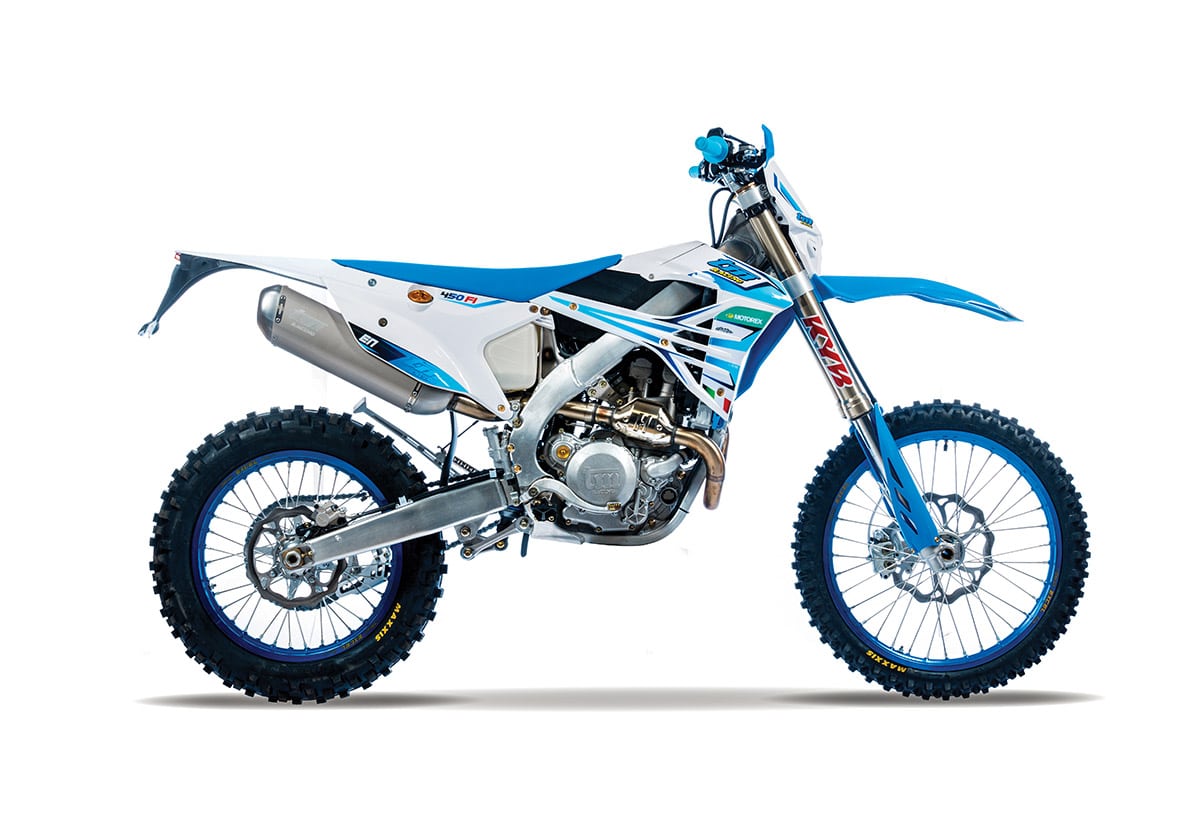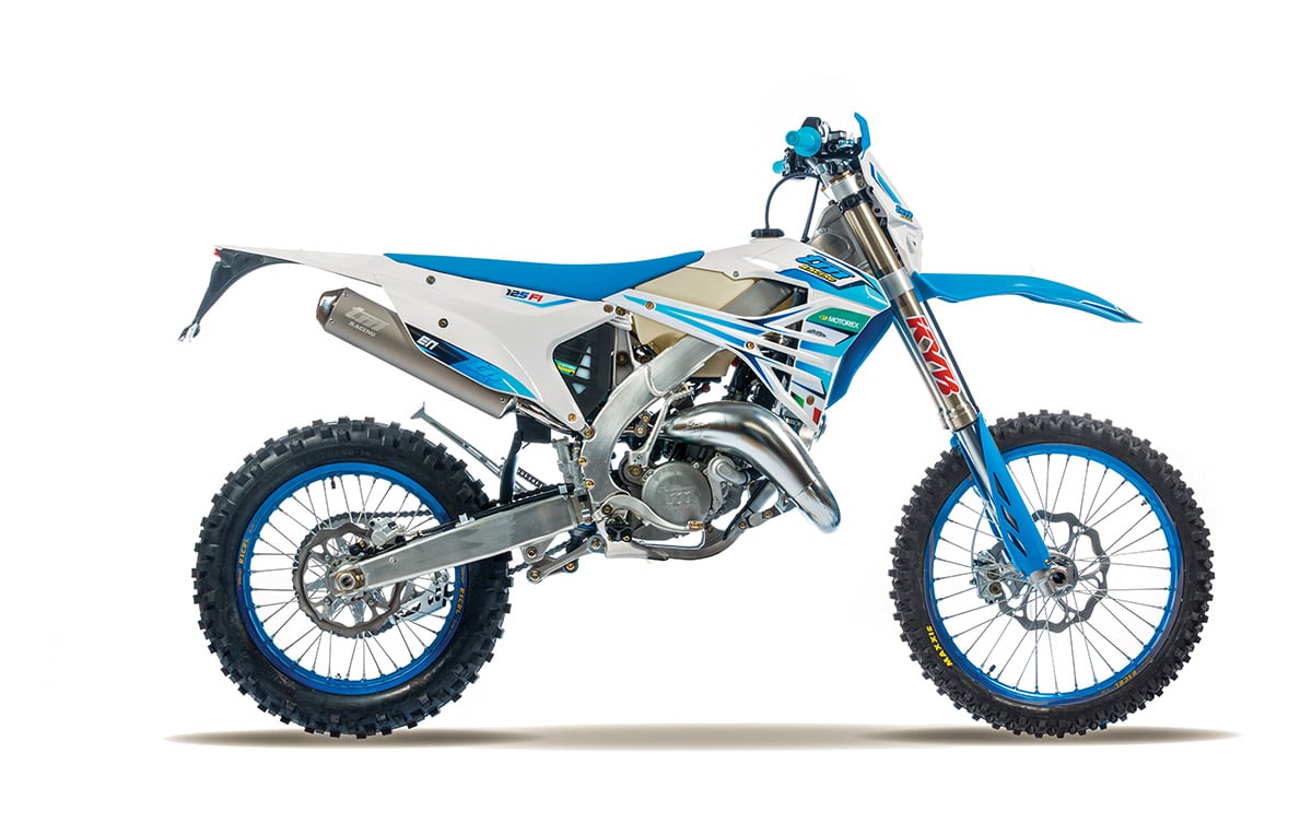 TM offers its own version of transfer-port fuel injection and uses different components from those used by KTM. The EN144Fi and EN125Fi are kickstart 6-speeds in full enduro trim. The frame is beautifully hand-welded aluminum. The fork is KYB. The shock is made in-house by TM, and the power valve is electronically controlled. The 144 can still be had without fuel injection for $10,395.