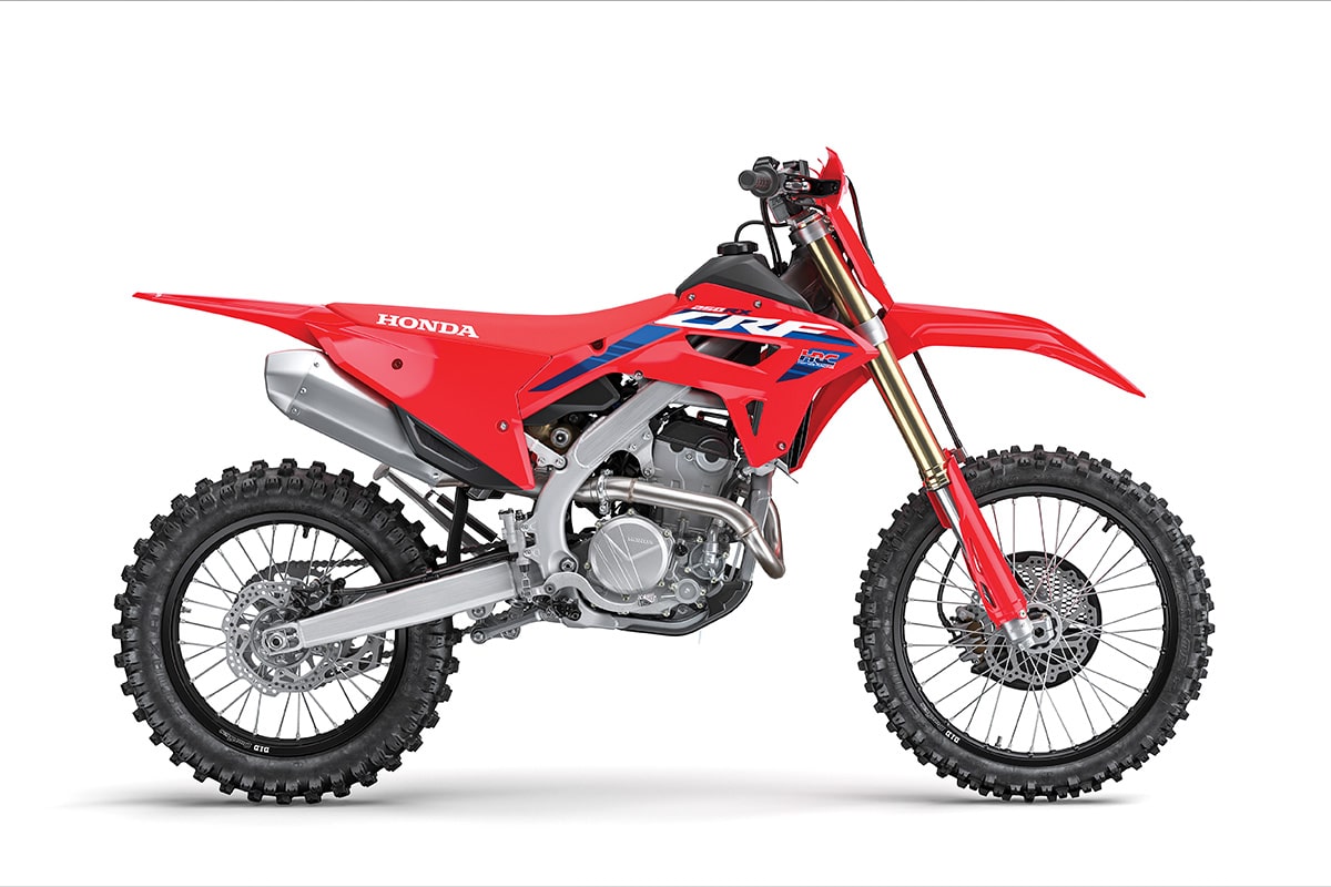 It’s easy to be confused by the alphabet-soup suffixes attached to some motorcycle names. The CRF250F is a good example. The “F” on the end stands for “family.” That means that Honda has designed this bike for the whole family, not just racers. It’s an air-cooled, fuel-injected fourstroke with an electric-starter. It has full-size wheels, but reduced travel brings the seat height down to 34.3 inches. The CRF250F has front and rear disc brakes.