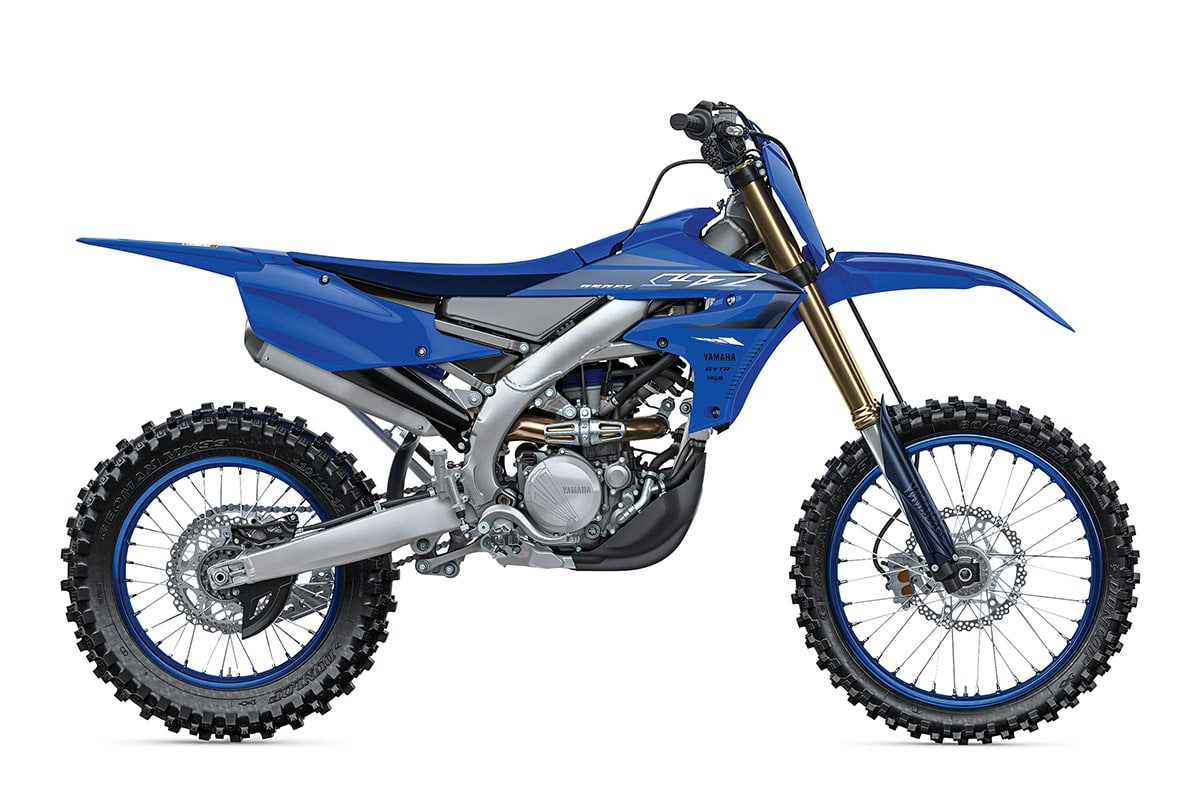 Last year Yamaha reworked the YZ250 two-stroke motocross bike, and for 2023, the YZ250X off-road bike got the same updates. That includes new bodywork, plus updated suspension and brakes. The X is considered a cross-country racer and has a number of features for that specialty. The 5-speed gearbox has wider ratios, the power delivery is softer, the suspension has off-road valving, the rear wheel is an 18-incher, and it has an O-ring chain and a kickstand. The tires are Dunlop AT81s.
