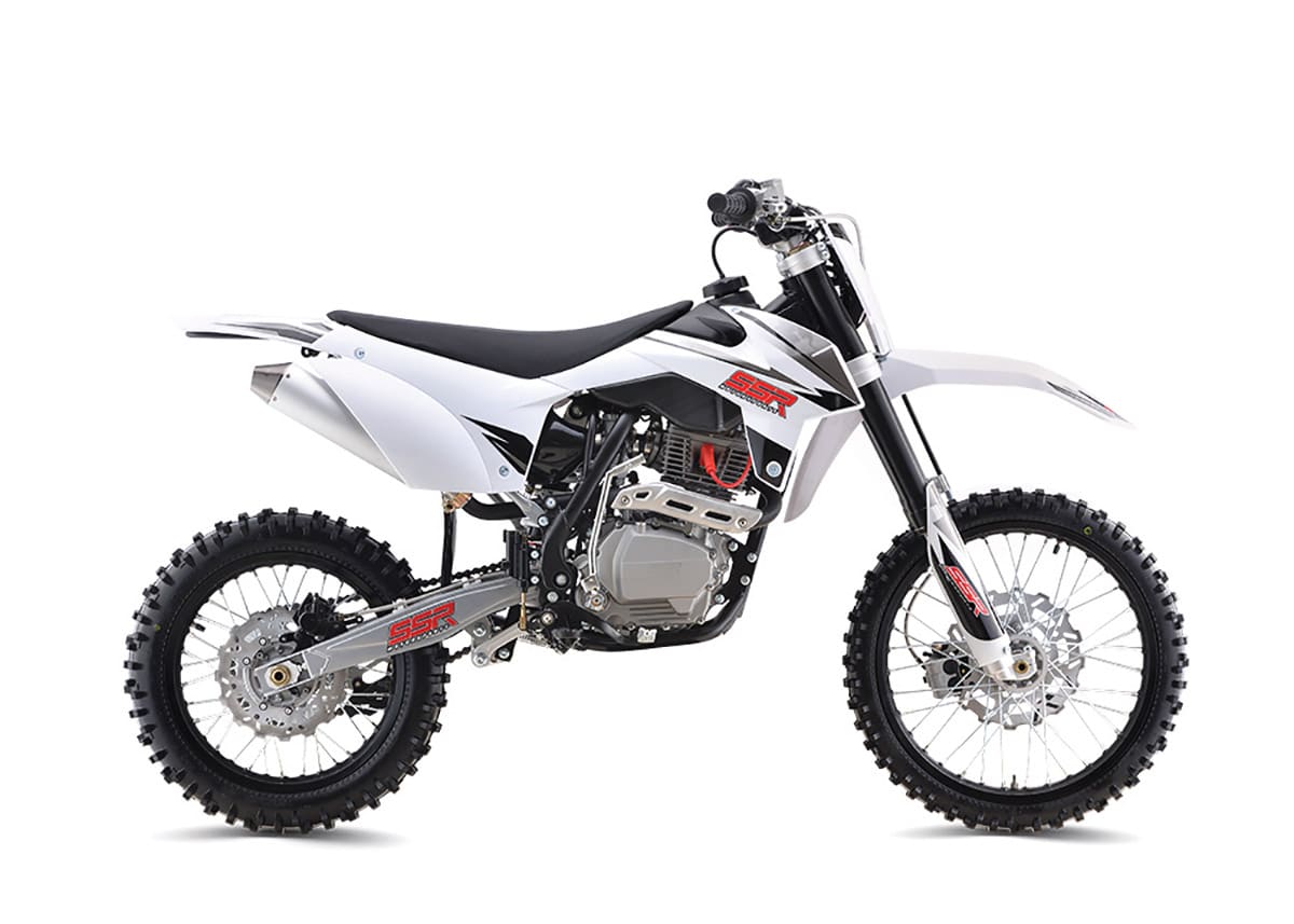 The SR189 offers a long list of features for not much money. It’s a big-wheel mini with an air-cooled, carbureted motor that has both electric start and a back-up kick-starter. The rear suspension has fully adjustable compression and rebound damping. Both brakes are hydraulic discs. SSR also has a smaller version that displaces 150cc and has a lower seat height for $2459. Beyond that, SSR offers a full line of pit bikes.