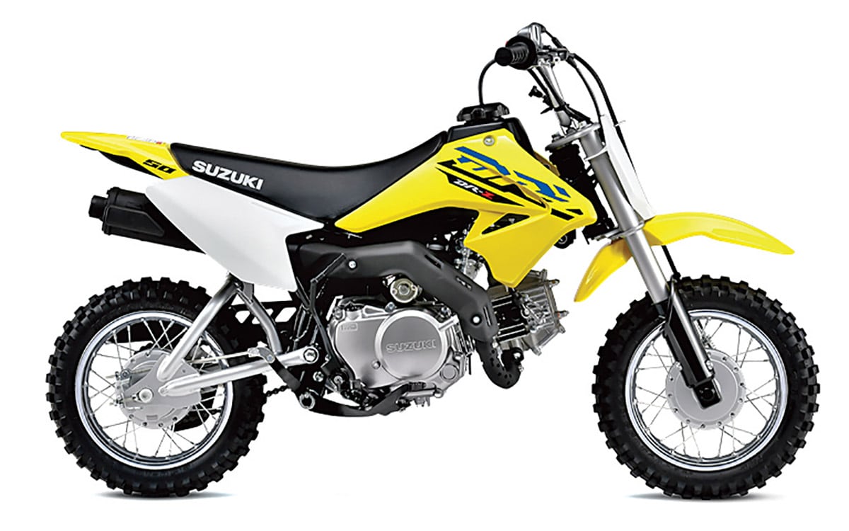 Suzuki isn’t a company known for updating its motorcycles often, but interestingly enough, the DR-Z50 has only been around since 2019. That makes it not only the newest Suzuki dirt bike currently offered, but the newest of the four-stroke minis offered by anyone. It has both electric start and kick start, but no fuel injection. The brakes are drums and the gearbox is a 3-speed.