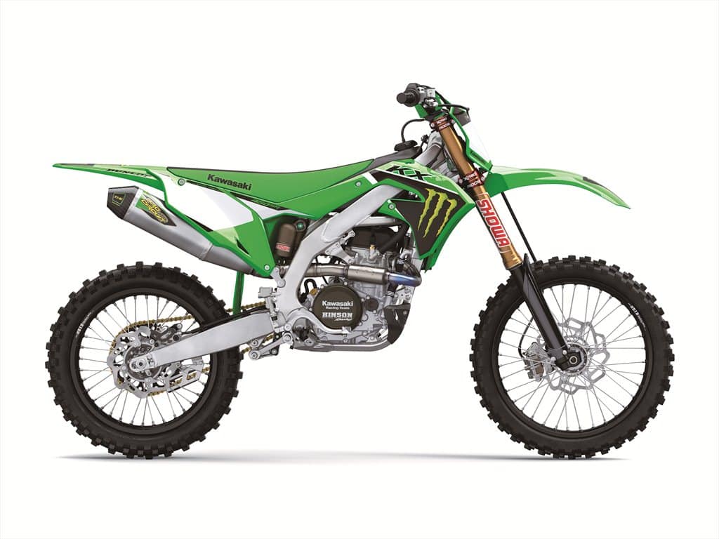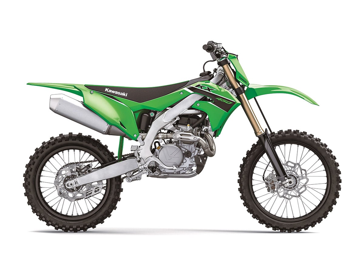 Kawasaki’s big KX is a serial winner in Dirt Bike’s annual “450 Shootout,” where it has been undefeated since the current version was introduced in 2019. It has Showa suspension, a Nissin hydraulic clutch and a double-overhead-cam motor with valves that are operated through finger-followers. Kawasaki features customizable ergos with four different handlebar positions and two different footpeg heights.