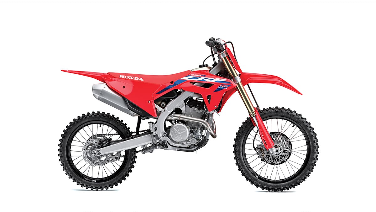 This is the flagship of the Honda motocross line. The CRF450RWE (WE for “Works Edition”) is a premium edition of the 2023 standard model, which already has numerous updates for 2023. The WE gets a full Yoshimura exhaust system, a ported cylinder head, a Hinson clutch basket and cover, Kashima and titanium oxide suspension coatings, D.I.D. DirtStar LT-X rims, and a long list of cosmetic upgrades.