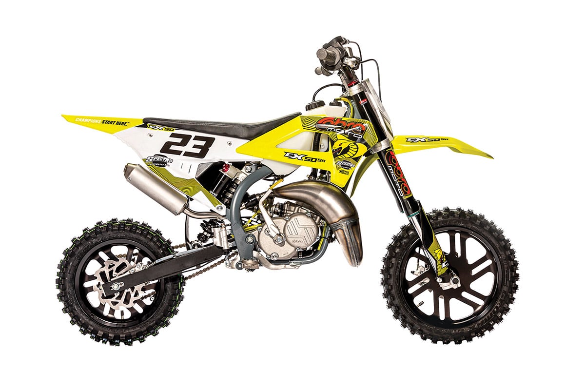 One reason the Cobra CX50 has earned over 300 championships is because the bike is built like a scaled-down factory motocross bike. It has twin radiators, forged triple clamps and would look perfectly at home at Anaheim One if it were just bigger. The standard CX50 already has a long list of high-end parts, but there’s also an upscale Factory Works Edition for the most elite young riders. It sells for $5719.