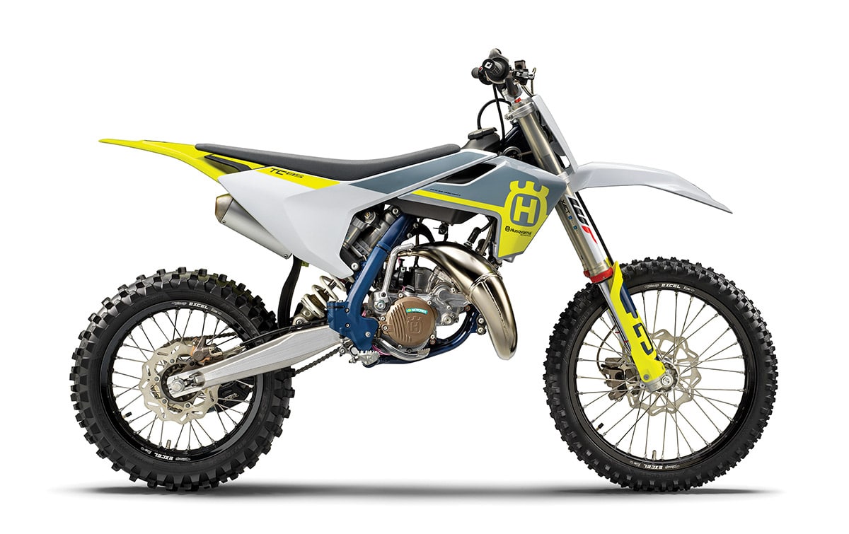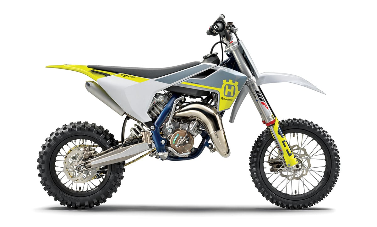 Husqvarna’s TC85 shares much with its KTM and GasGas brothers but carries a slightly higher price and is seen as the elite brand of the three. It still uses a case-reed, power-valve, 6-speed motor. Most of the components are the same as those of the KTM, including Excel rims, WP suspension, Formula brakes and ODI grips. A version with 19/16-inch wheels is $6949.