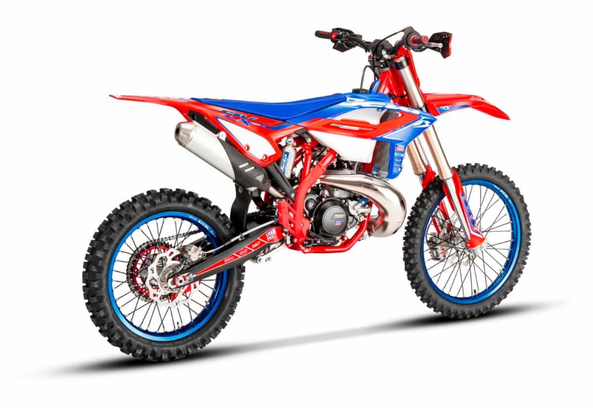 If you were around in the ’90s, you’d know that the 200cc two-stroke used to be an American off-road institution. Beta remembers and offers the 200RR to fill that gap. The motor has a bigger bore and a longer stroke than the 125RR. It also has electric start, oil injection, Sachs suspension, Nissin brakes and a 6-speed gearbox. For 2023 it gets an upgraded Sachs fork, along with new bodywork and graphics.