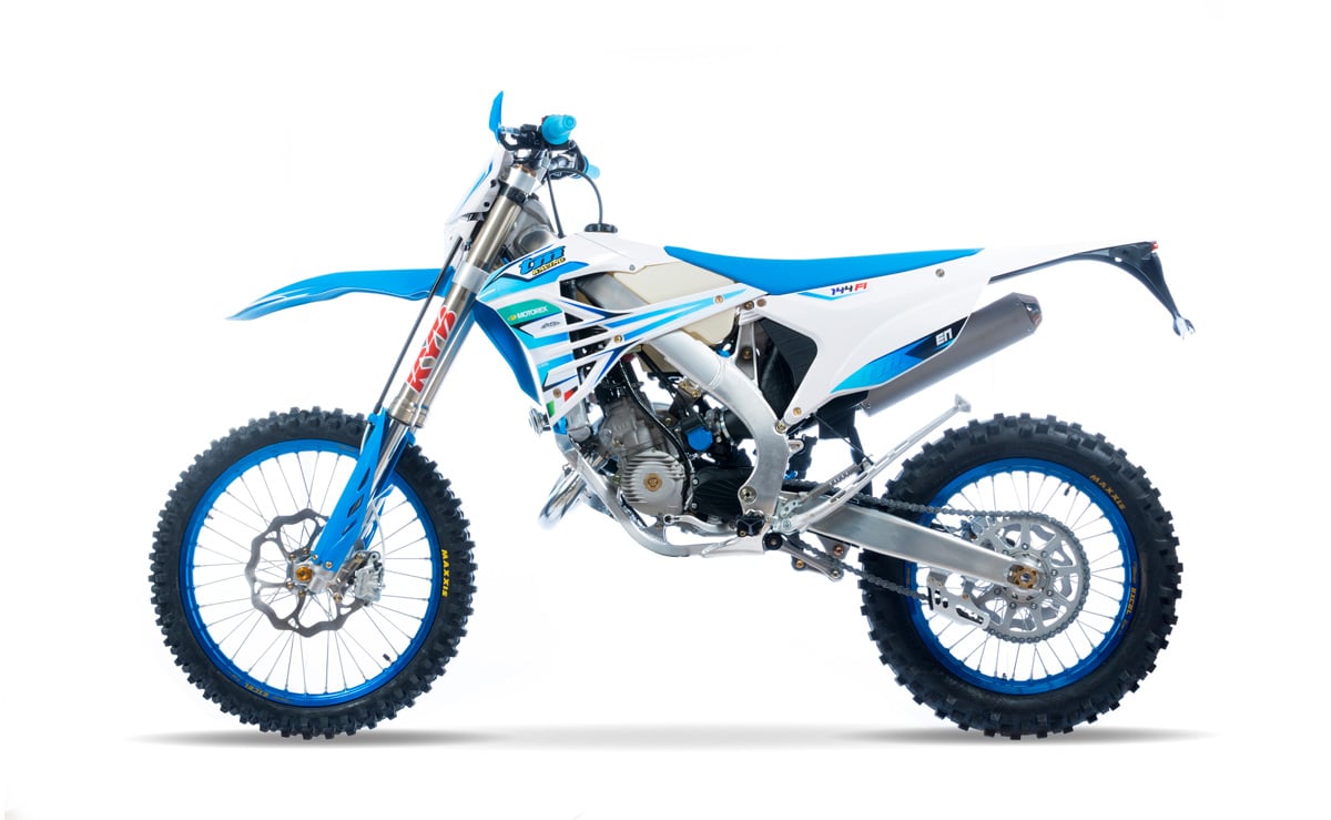 TM offers its own version of transfer-port fuel injection and uses different components from those used by KTM. The EN144Fi and EN125Fi are kickstart 6-speeds in full enduro trim. The frame is beautifully hand-welded aluminum. The fork is KYB. The shock is made in-house by TM, and the power valve is electronically controlled. The 144 can still be had without fuel injection as well for $10,395.