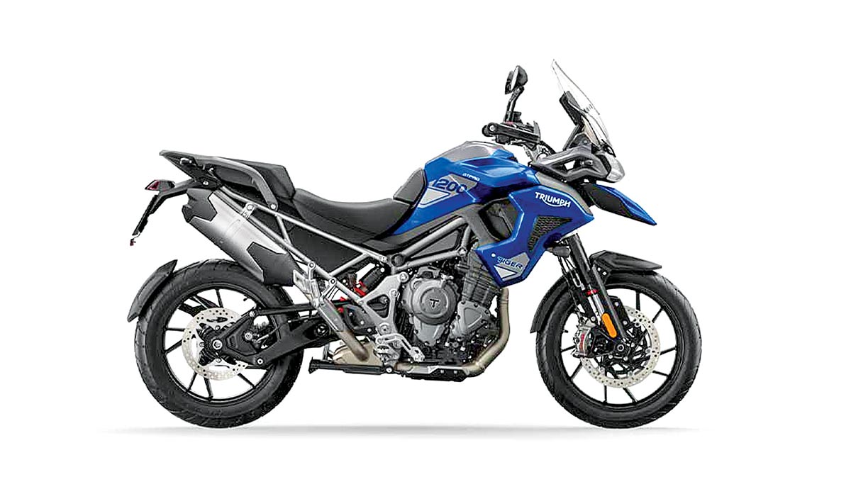 The Tiger Rally Pro is more dirt-oriented and features the all-new, 1160cc, in-line, three-cylinder engine; 6-speed gearbox; shaft drive; and long-travel Showa suspension. The bike comes with Triumph’s adaptive cornering lighting to deliver dynamic enhanced visibility, along with the new angle-adjustable, full-color TFT instrument display; all-LED lighting; ergonomic, backlit switchgear incorporating updated cruise control; Triumph shift-assist for clutchless up and down gear changes; a seamless, keyless ignition, plus hand guards and engine protection.