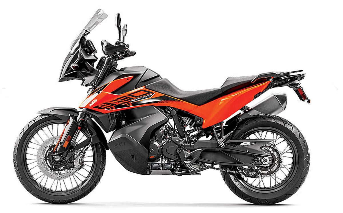 Tagged as KTM’s gravel traveler, the 890 Adventure has improved power, new electronics and suspension adjustability. The clutch is called the PASC, which is a slipper clutch that reduces hard forces during shifts. The wheels are 21/18, spoked, laced to anodized hubs and are tubeless. The bike is equipped with dirt-worthy WP dampers, a steering damper and a tall windscreen. The saddle is height adjustable, and there is a 5-inch TFT display and LED lighting. The 890 has a six-speed sequential gearbox and a compact parallel twin.