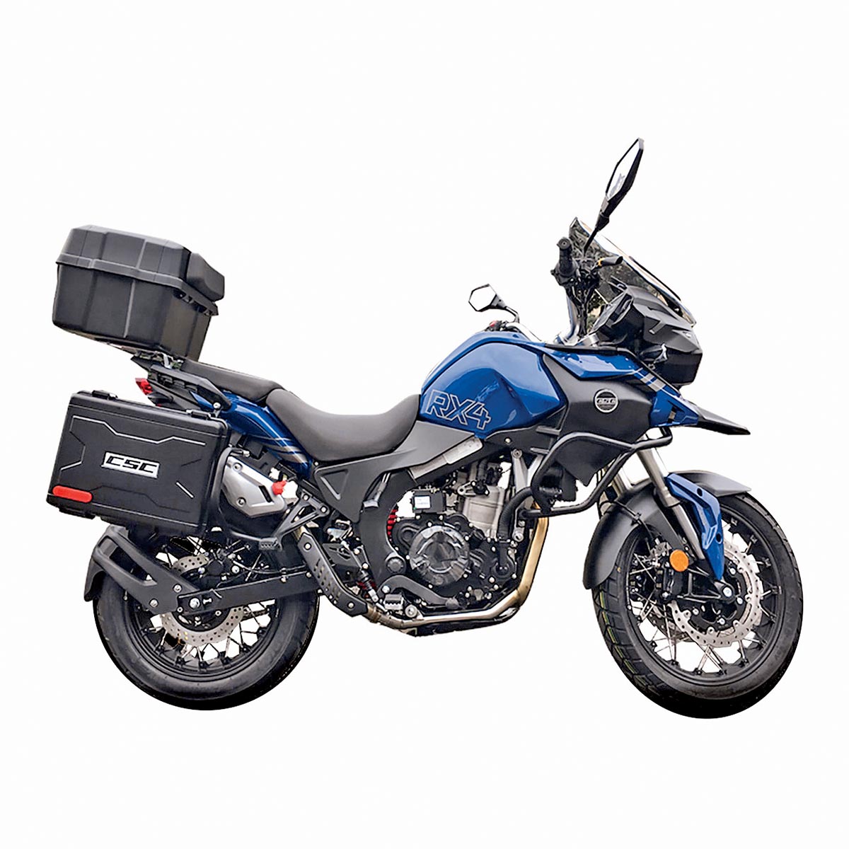 The RX4 has a 450cc, fuel-injected, DOHC motor with a six-speed gearbox. The 5.3-gallon fuel tank gives it a range of around 300 miles. It comes equipped with an adjustable windscreen and a 5.3-gallon tank, plus the RX4 comes with molded side cases and a tall rear box. The company sells its products online and offers a two-year warranty.