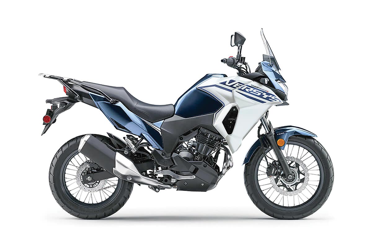 The Versys-X is Kawasaki’s most economical, entry-level machine designed for adventure touring. Power flows through a 296cc parallel twin that gets fuel via a digital fuel-injection system. It comes equipped with a 41mm Showa fork, a 19-inch front wheel, a 17-inch rear wheel, a windscreen and a 4.5-gallon fuel tank that is good for long exploration rides.