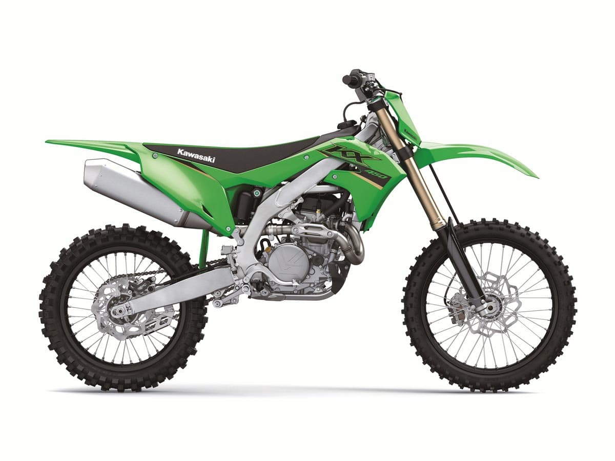 Kawasaki redesigned the KX250 step-by-step over a period of years. In 2020, the motor was updated with a finger-follower valve train, and in 2021, the KX got a new chassis, electric start and a hydraulic clutch. For this year, Kawasaki let the engineering crew take a break. The KX returns with its KYB coil-spring fork and KYB shock. The KX allows you to change maps by swapping color-coded electronic couplers.