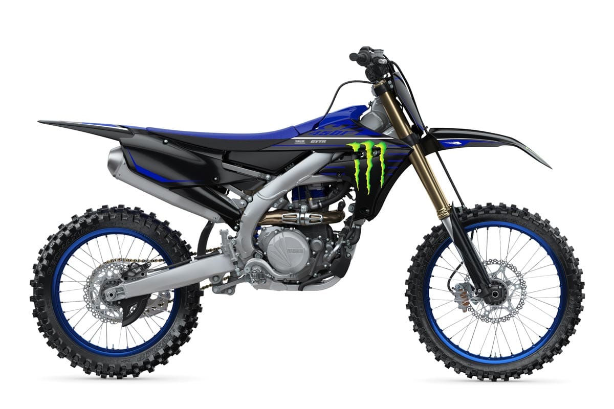 Yamaha has a history of offering different color options in its motocross line. For 2022, Yamaha takes this to the next level with the YZ450F Monster Energy Edition. This is a special edition to honor the success of the Monster Energy Star Yamaha racing team, which just clinched the Lucas Oil Pro Motocross Championship in the 450 class. The special edition features black plastic and Monster Energy graphics but is mechanically identical to the standard model.