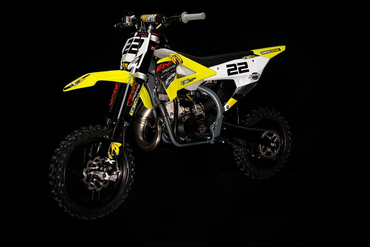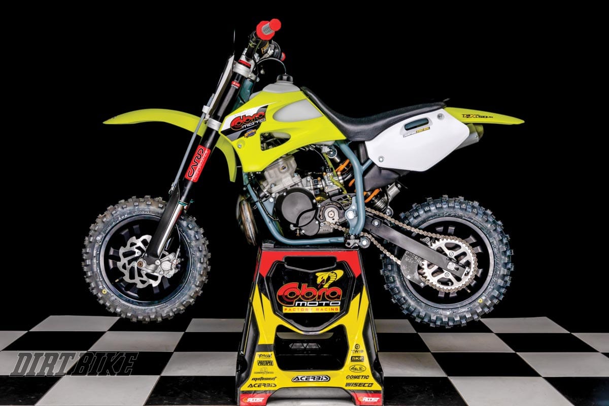 No motorcycle company has a more successful record in amateur racing than Cobra. The CX50 has earned over 300 championships worldwide and is still going strong. The philosophy behind the product is to offer works bikes on a mini scale. The standard CX50 already has a long list of high-end parts, but there’s also an upscale Factory Works Edition for $5599.