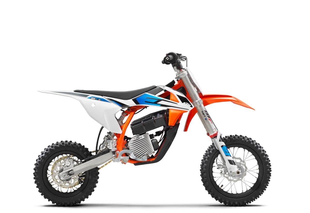 Electric power is an ideal way for young riders to learn the ways of riding motorcycles. The electric cell in the SX-E can provide up to two hours of general riding or 25 minutes of all-out racing. It takes about 70 minutes to get a full charge. In performance, the SX-E offers six different levels and is competitive with a 50cc two-stroke. The seat height is adjustable, and the air fork can be altered to suit the rider’s weight.
